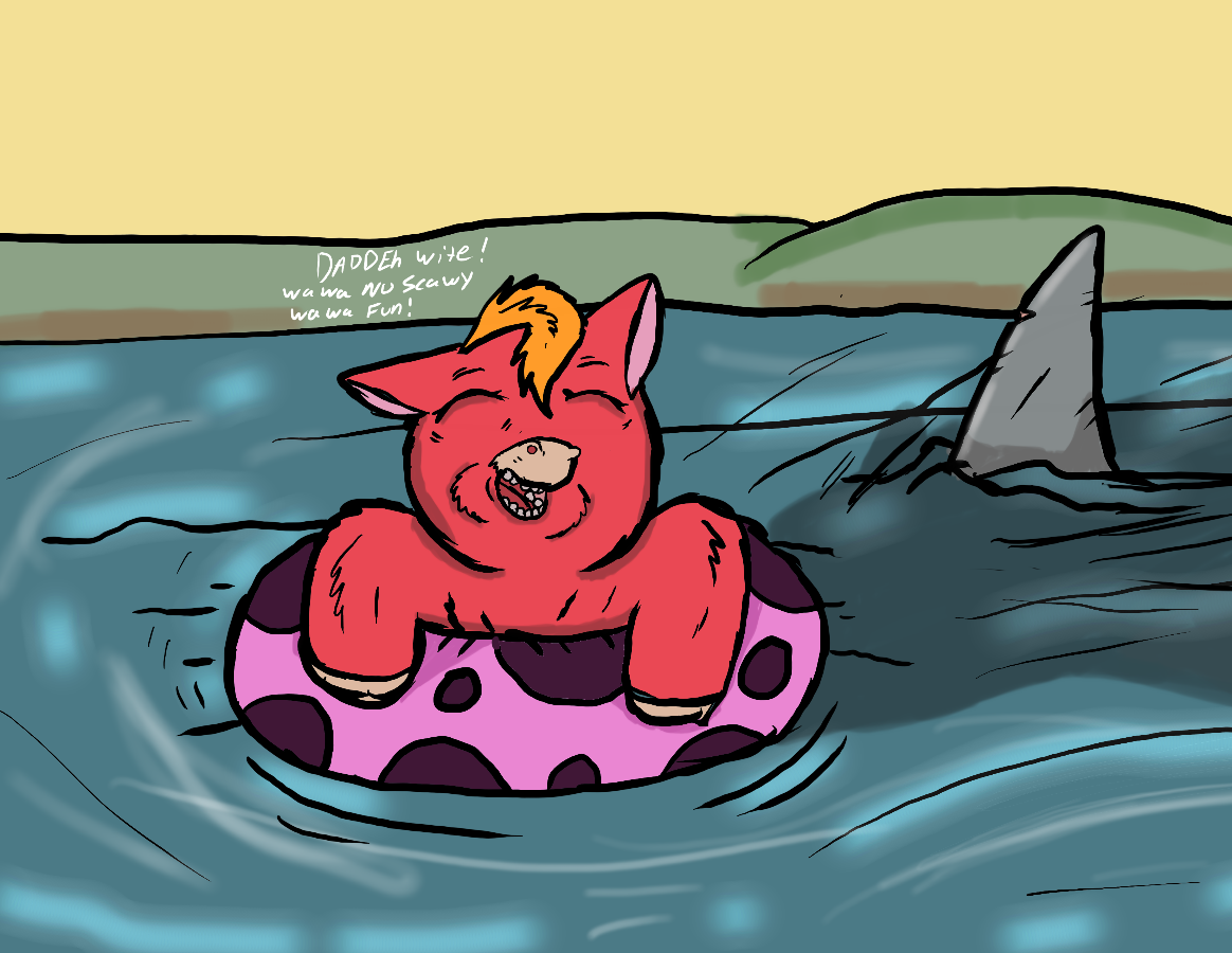 Poor shark. I hope it gets a whiff of that thing’s ass before it ends up with a mouthful of poo.