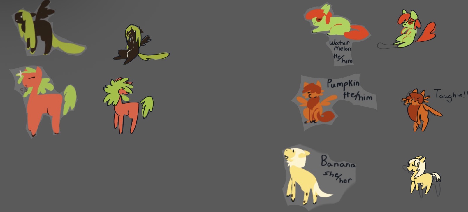Watermelon: he/him Green fur and red mane, earthie
