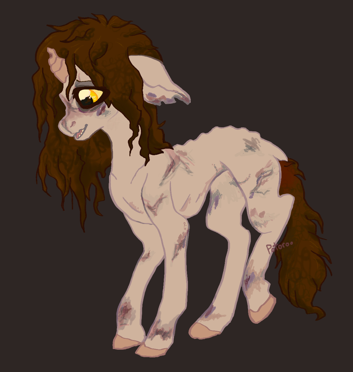 And I feel like this image captures those things pretty well–both the “small presence in a big body” quality, and the sense of Tar being a fluffy that’s been stretched and deformed bit by bit into a likeness of an MLP pony. The phrase “ersatz MLP pony” is really my favorite description here, because it encapsulates everything about her strange appearance.