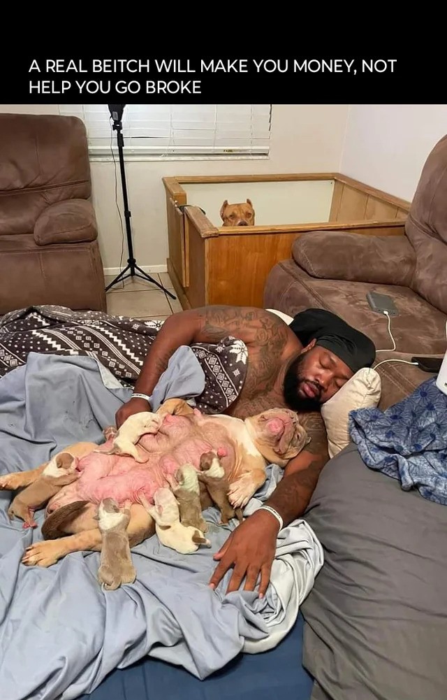 The real pic is so fucking cute, mummah sleeping while all the puppies sip on her frankly kinda gross dog tits. Honestly pitties in general are kinda gross but they’re still cute lmao