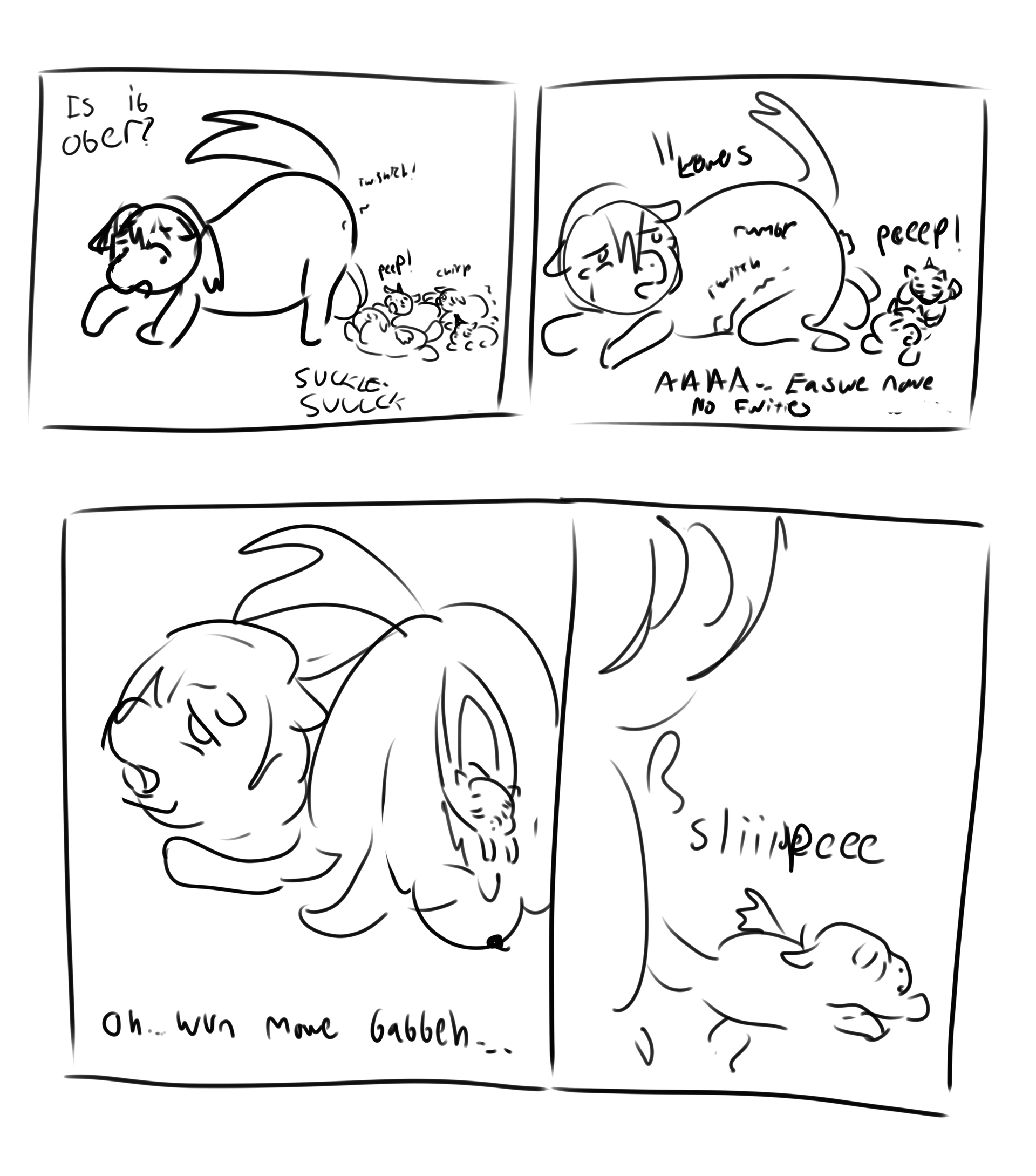 Thank you so much! And for real! Without that “special voice” and Lady’s own determination, she or her babies could’ve died in the proces! (I know in real life there’s more complications and help needed when babies are born either legs first, or are too large but I really wanted a hugbox birthing story!)