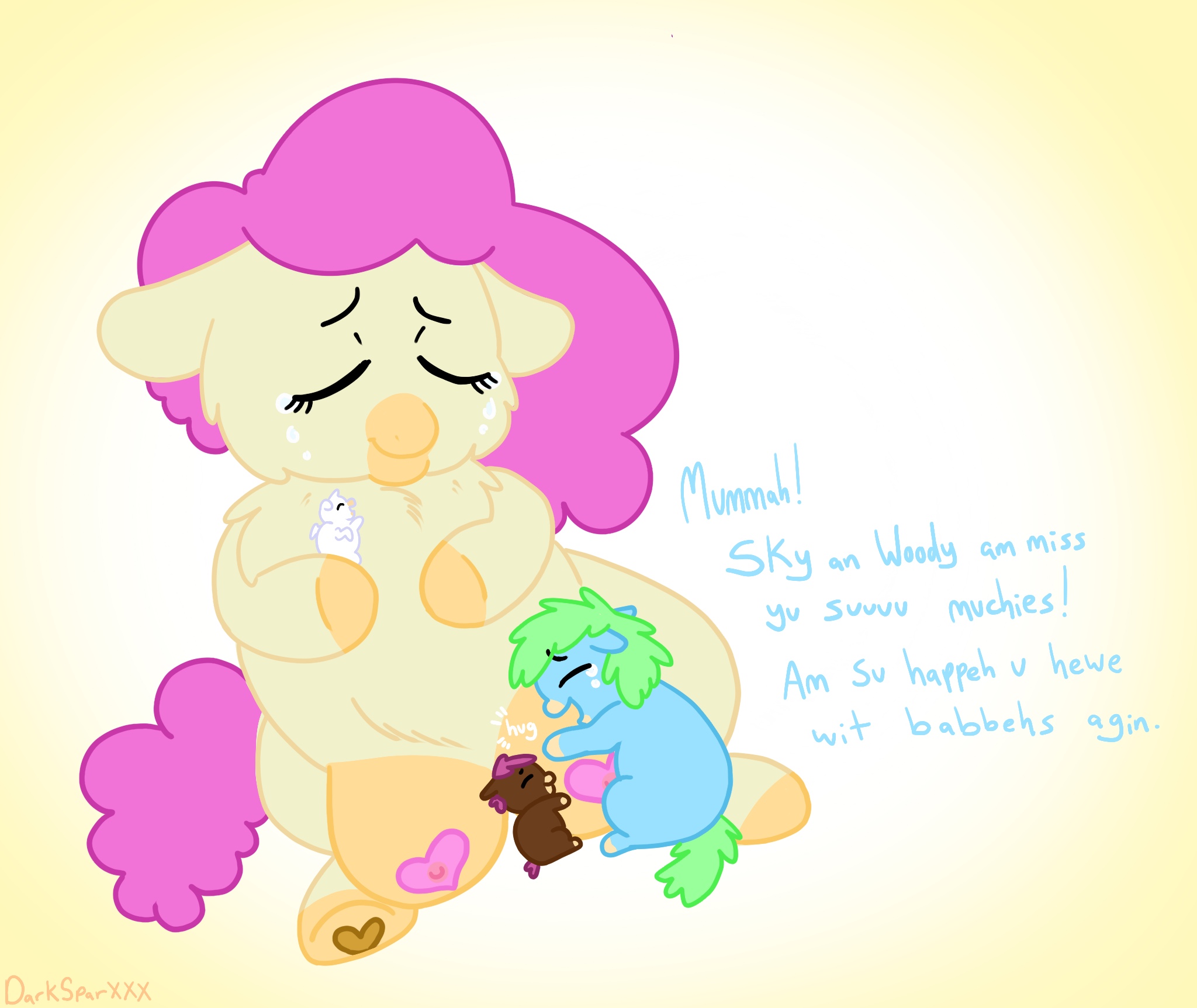 Liked the image, however, you forgot a couple of her fluffies babehs that died during her biggest poopies, a yellow one, pegasus, I think, and an orange one that broke its neck when it fell to the ground, otherwise great image