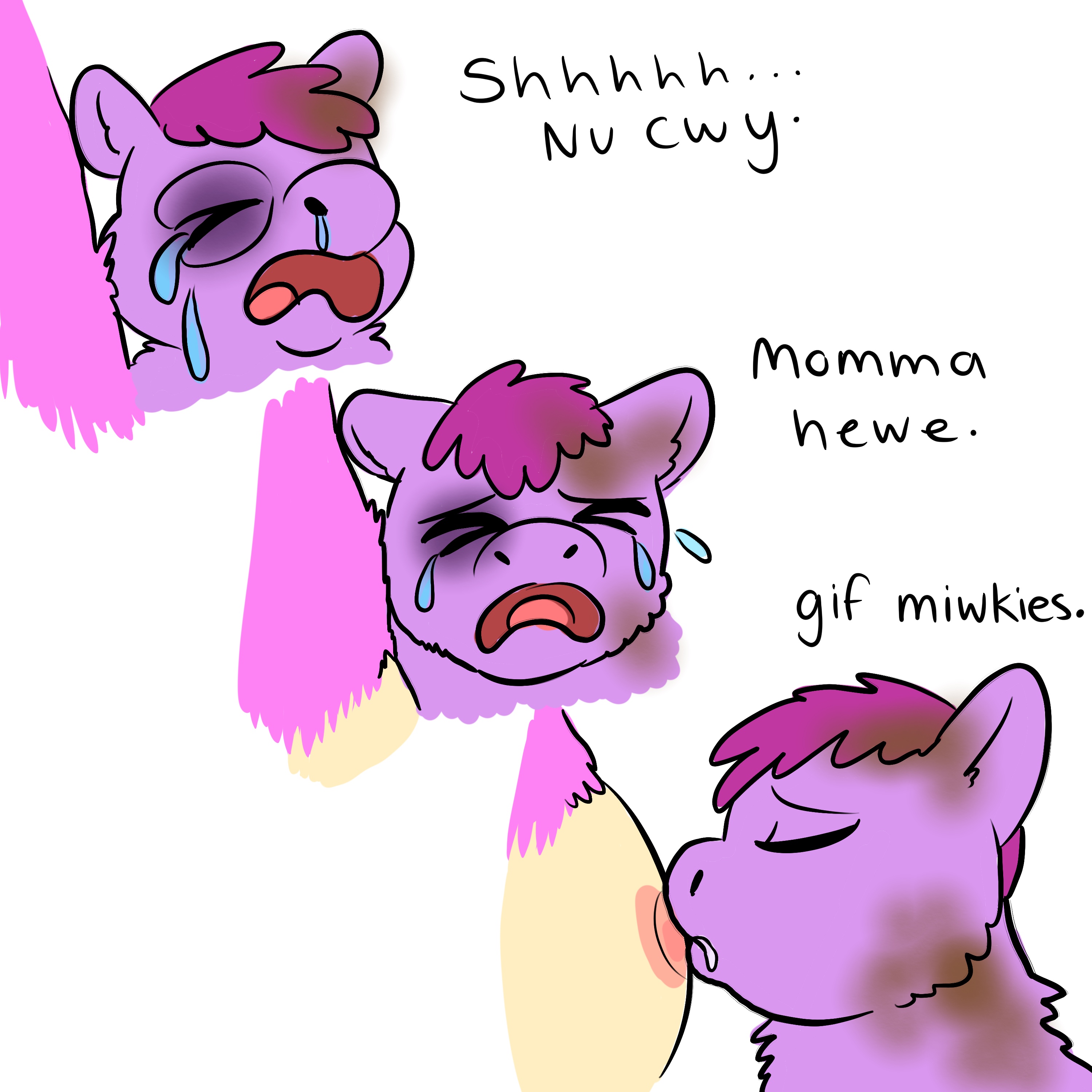 And then the purple kid’s fears being washed away by the comforting taste of milk.