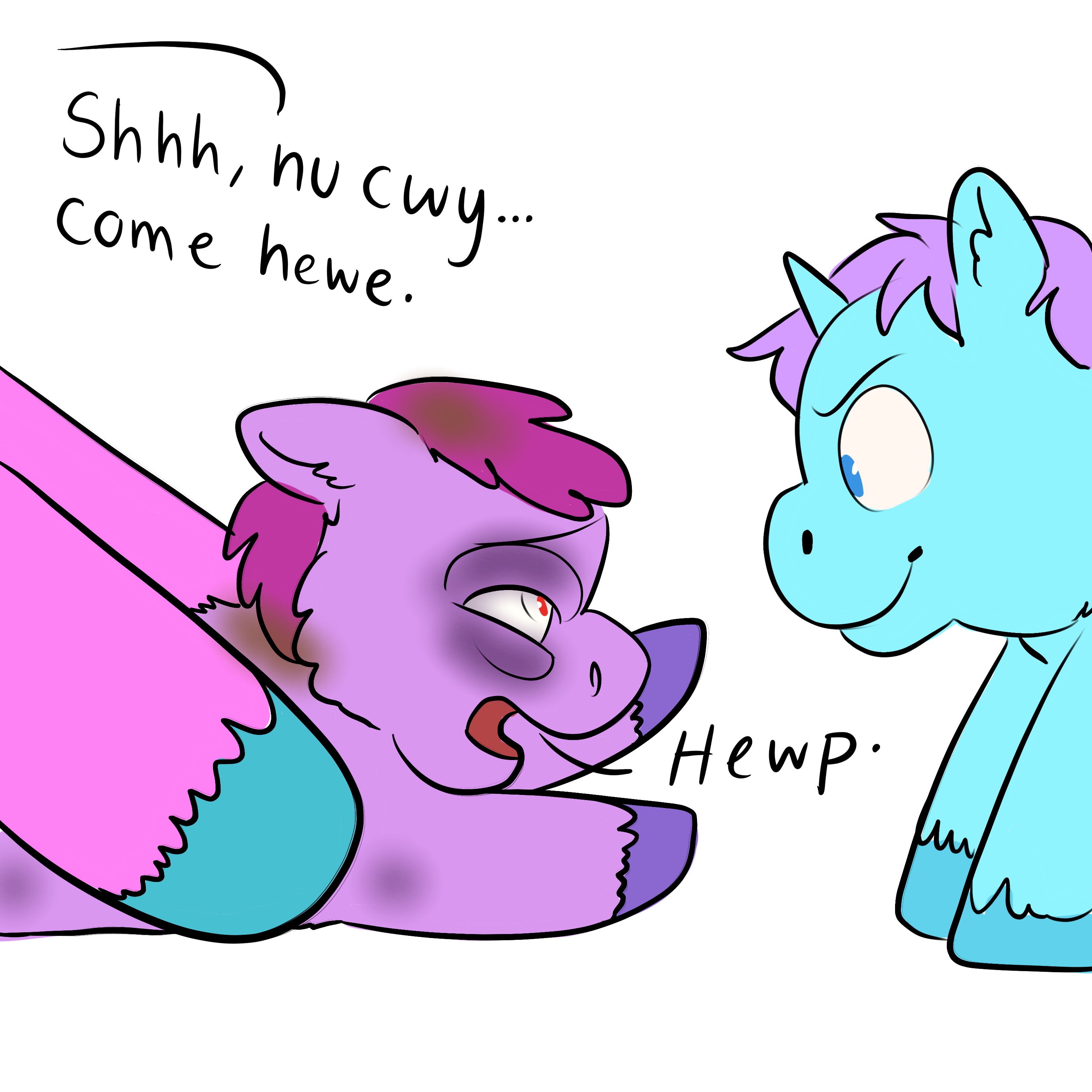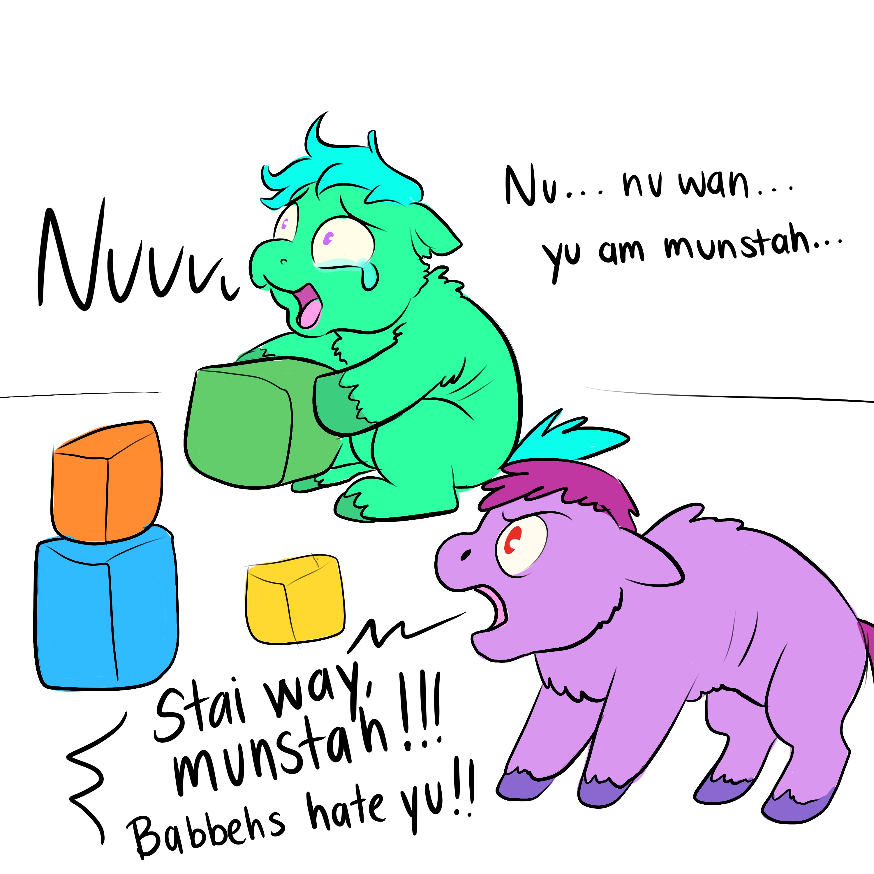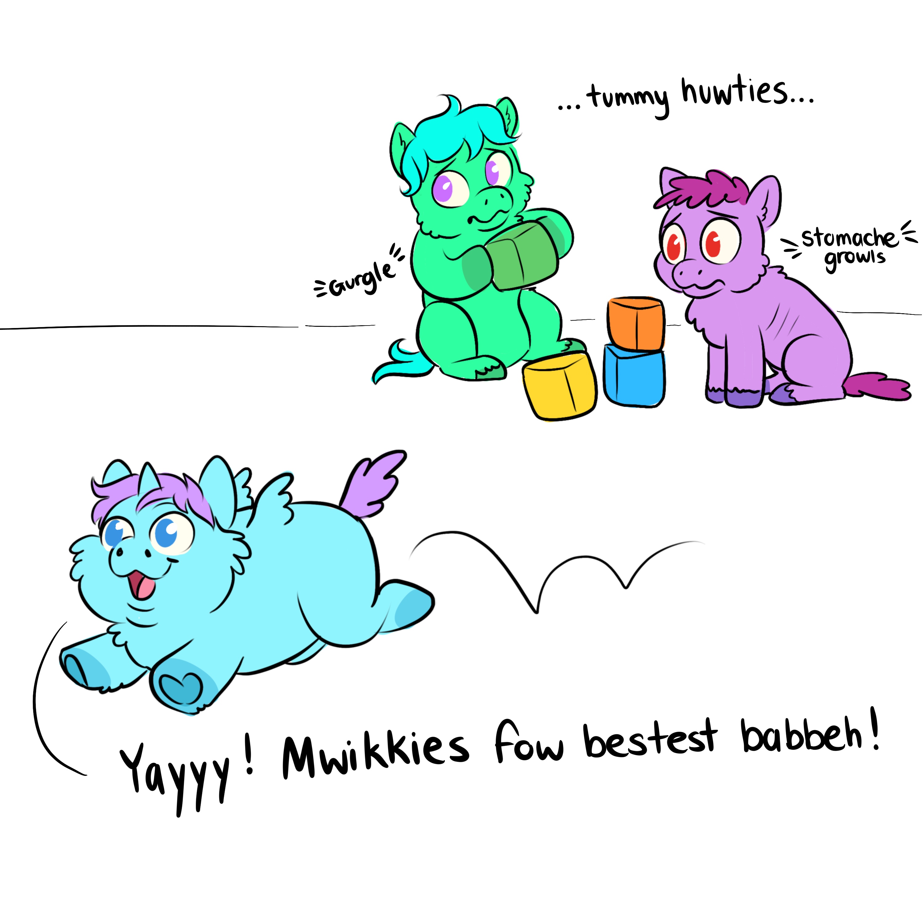 I can’t help but wonder how long their eyes have been open. Additionally, is this innate alicornphobia, or did someone influence the babies? It’s perfectly possible something happened at day care.
