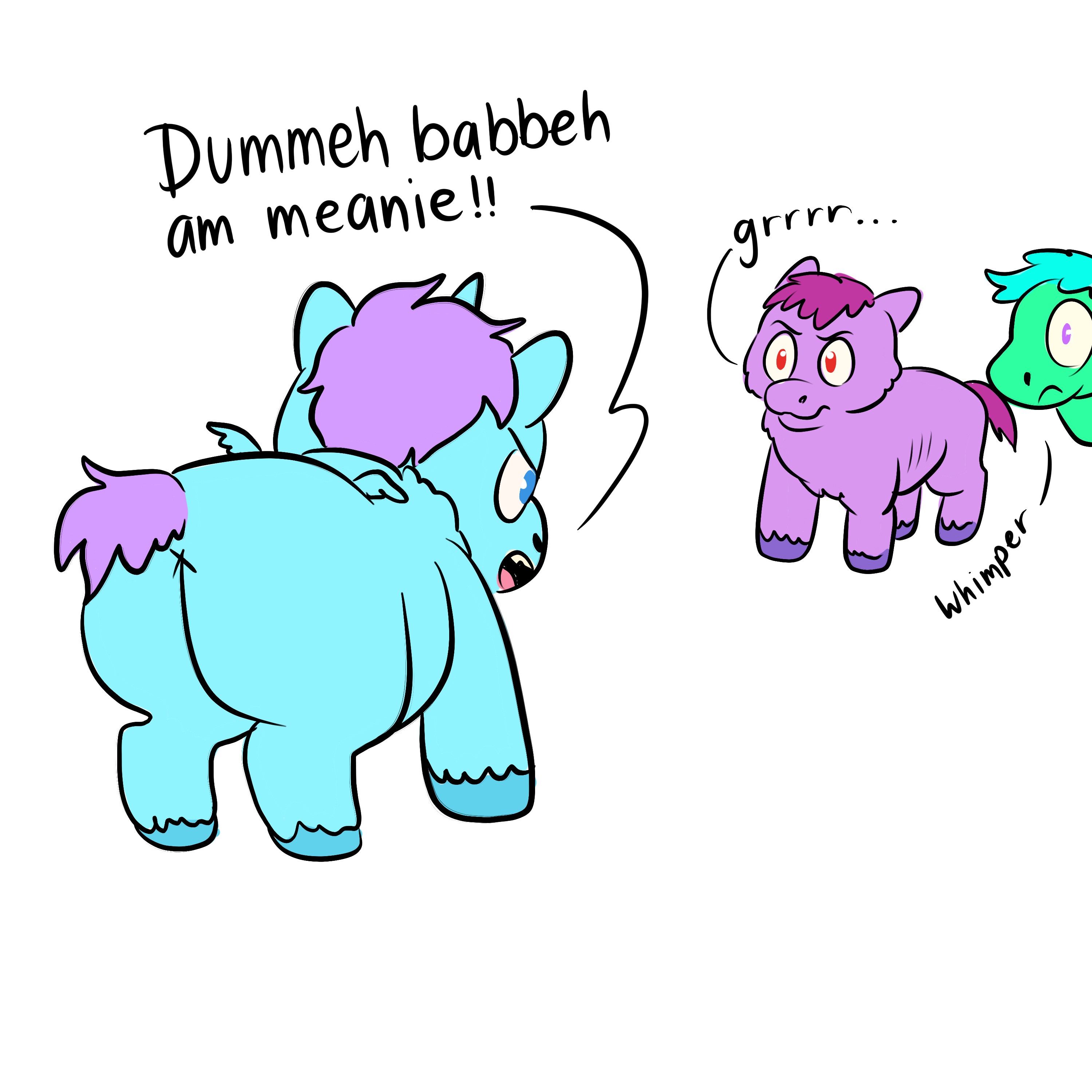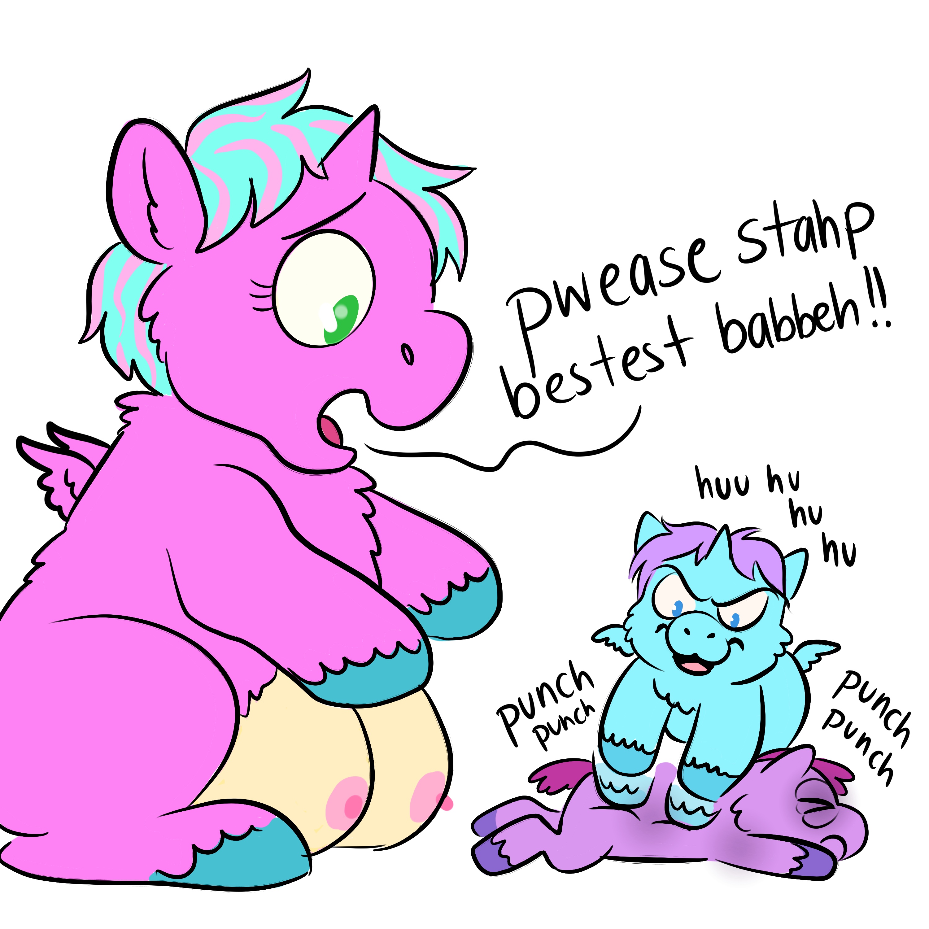 The Alicorn kid bravely standing up for their mum, but in doing so actively acts like the monster their sibling thinks they are.