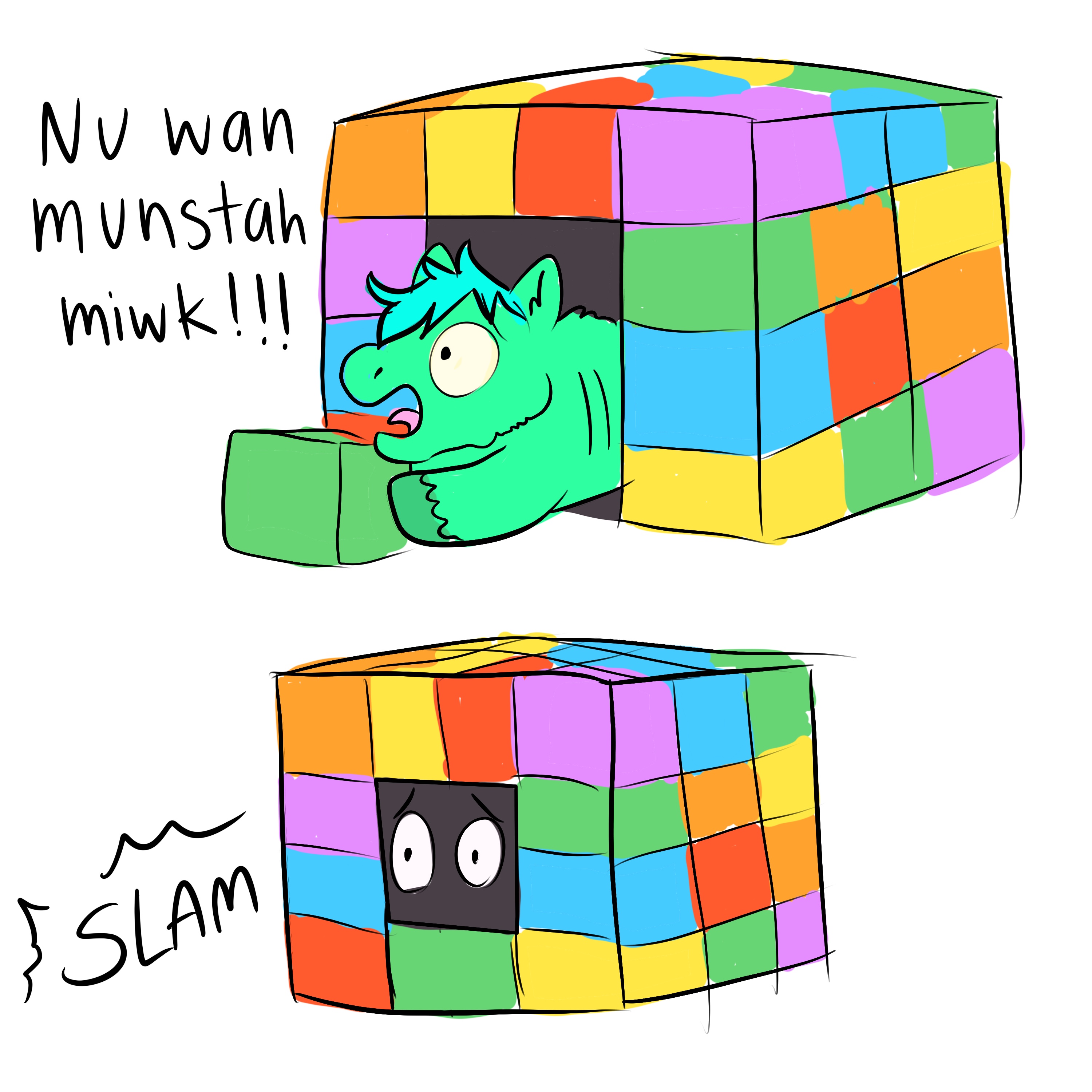 Someone please rescue those poor babbehs from this den of munstahs!