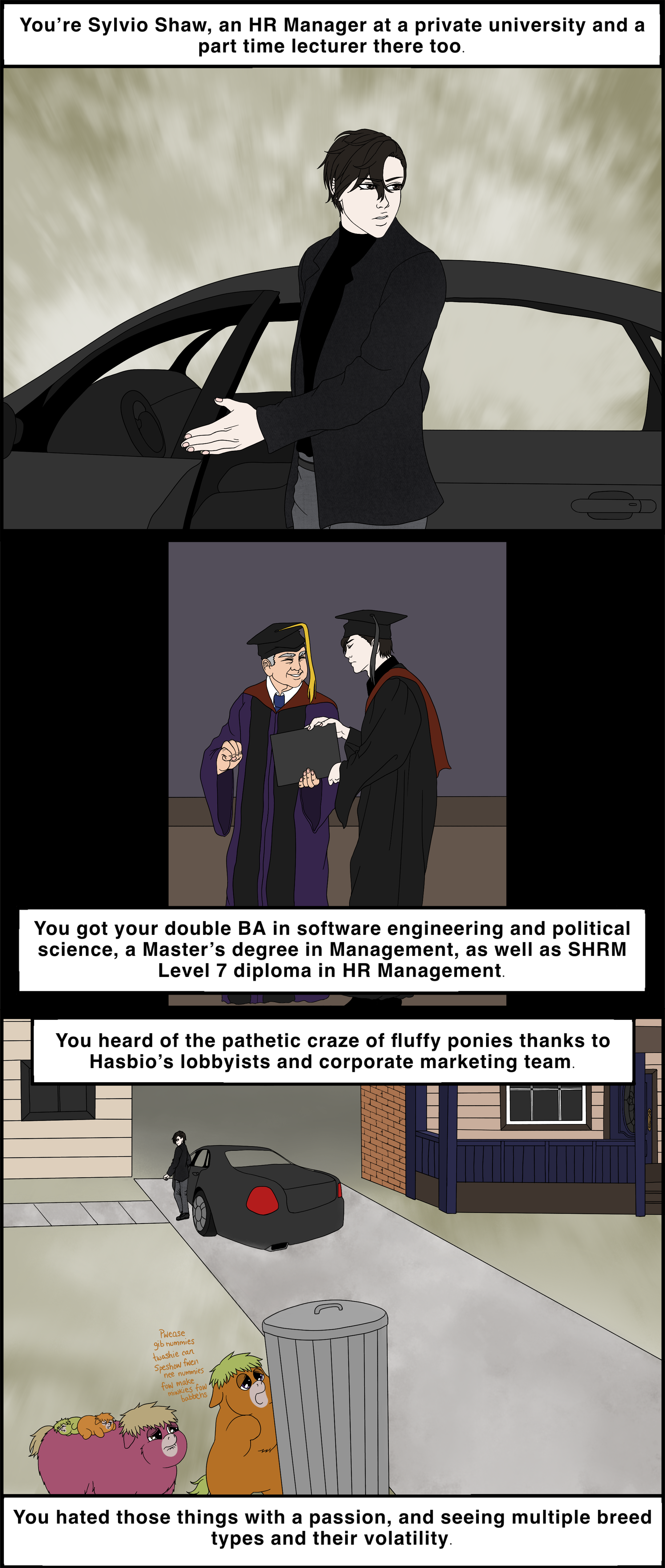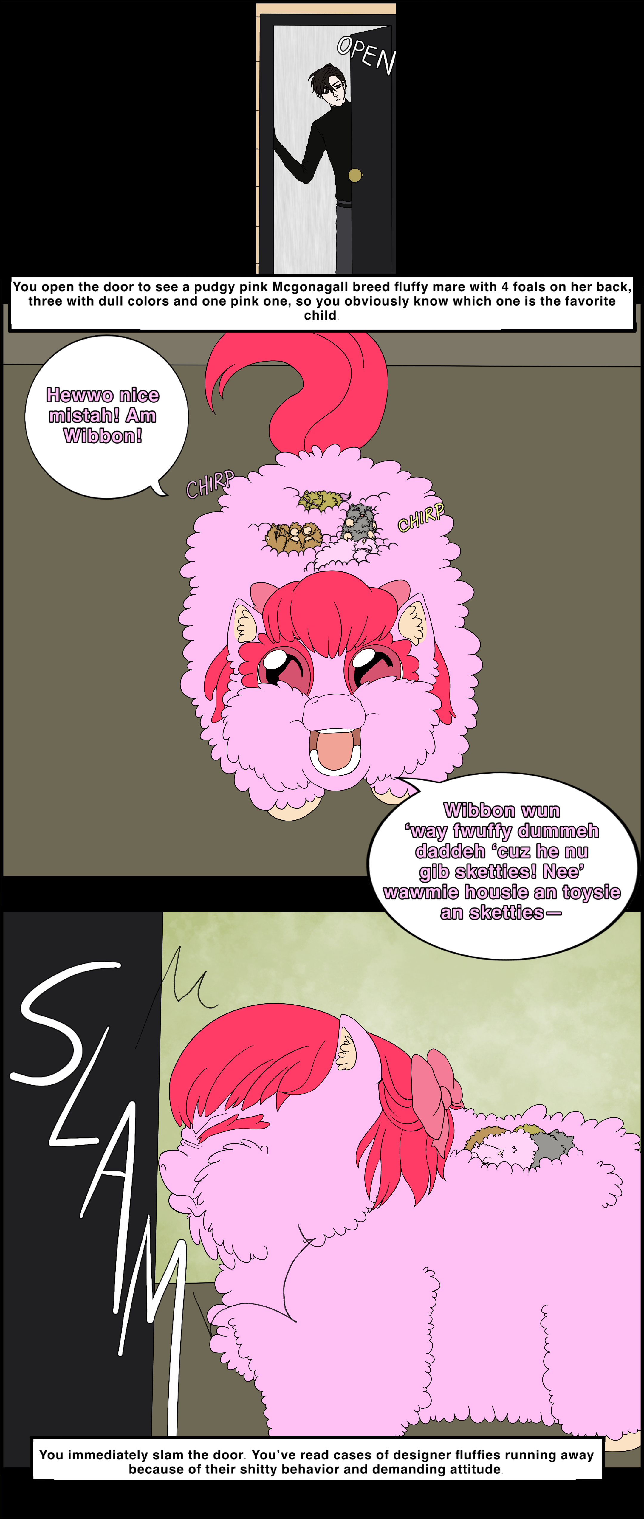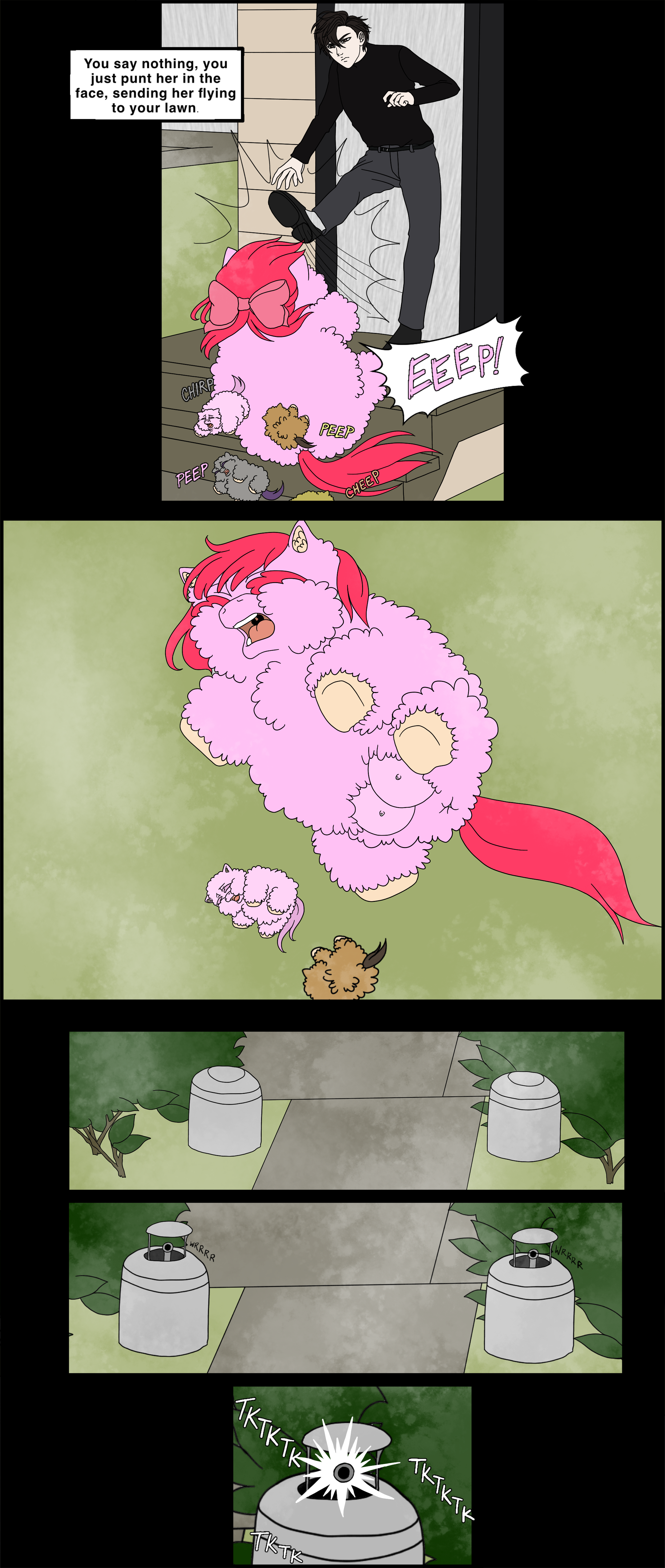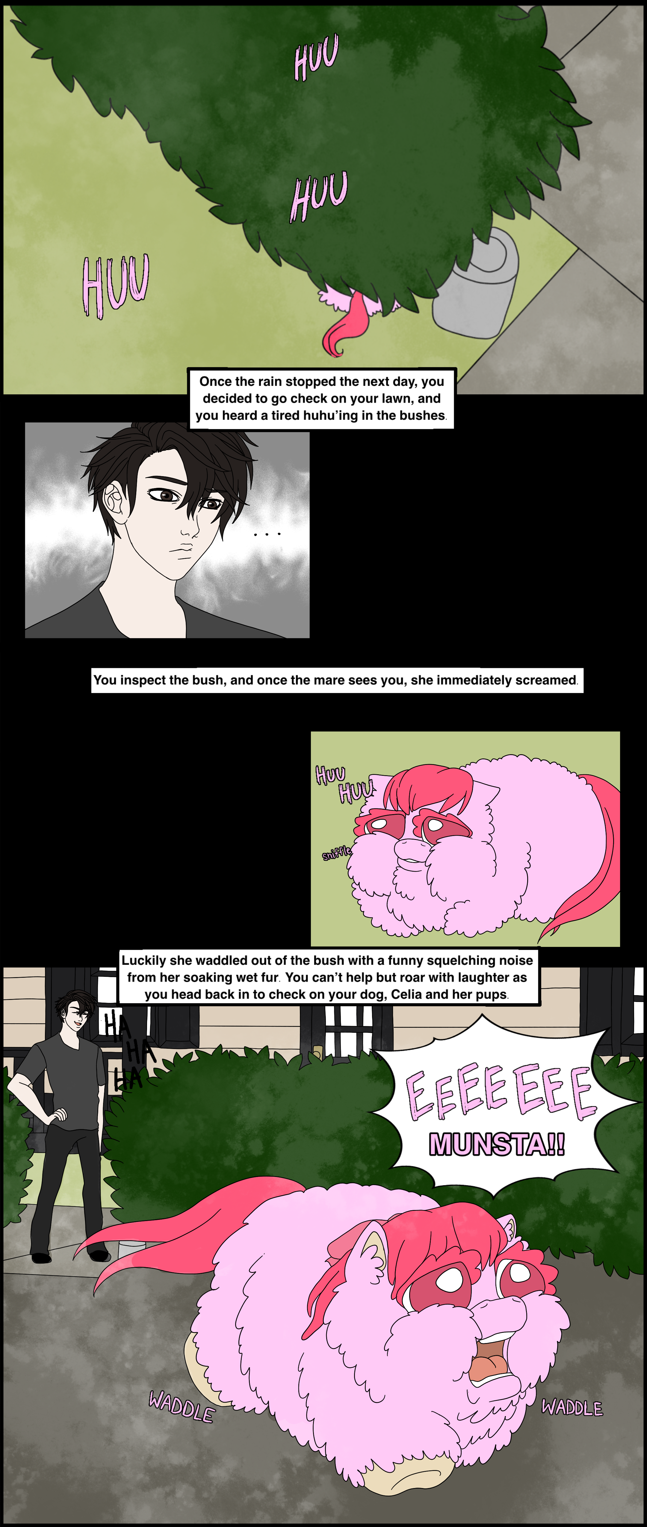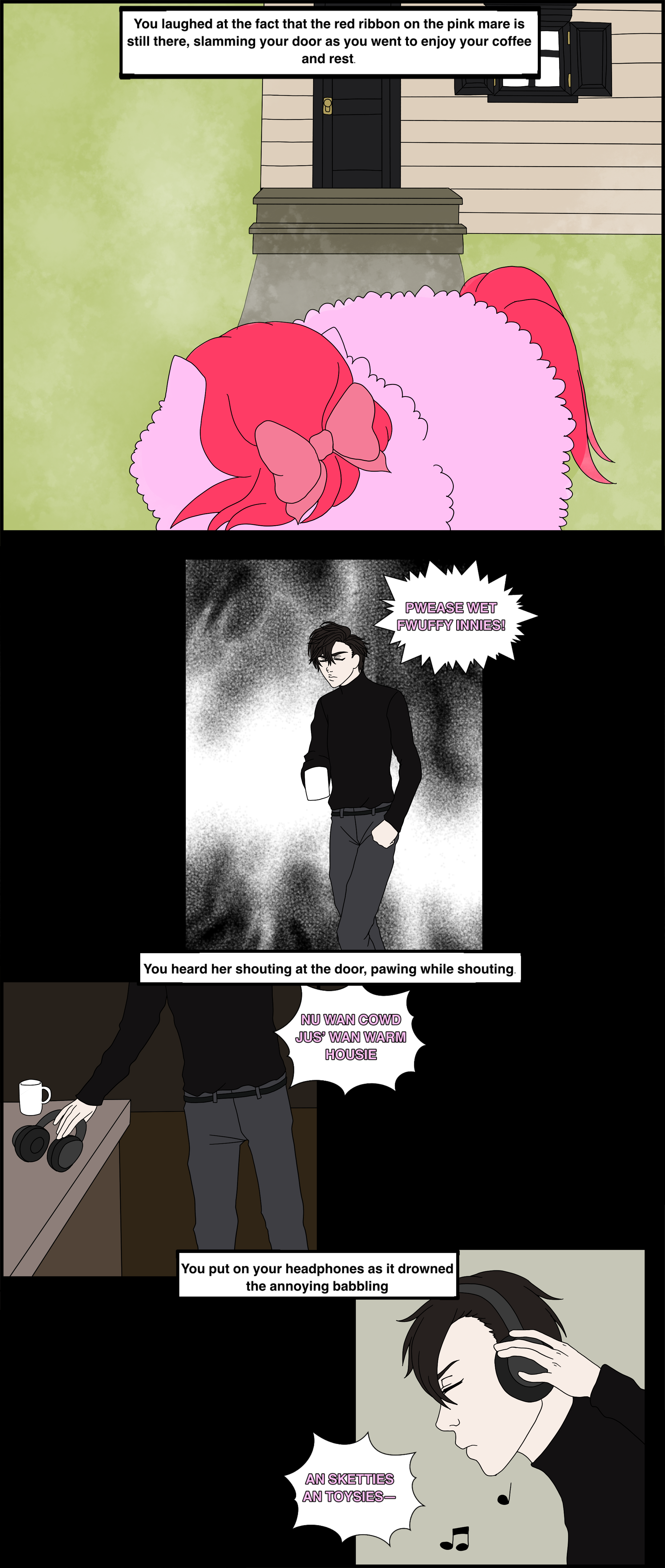 As for the story, I know it wasn’t written by you but I think it would be a whole lot more satisfying if the mare begged for love right after being found out for killing the puppies, not even stopping to consider the reason they might be in his house in the first place.