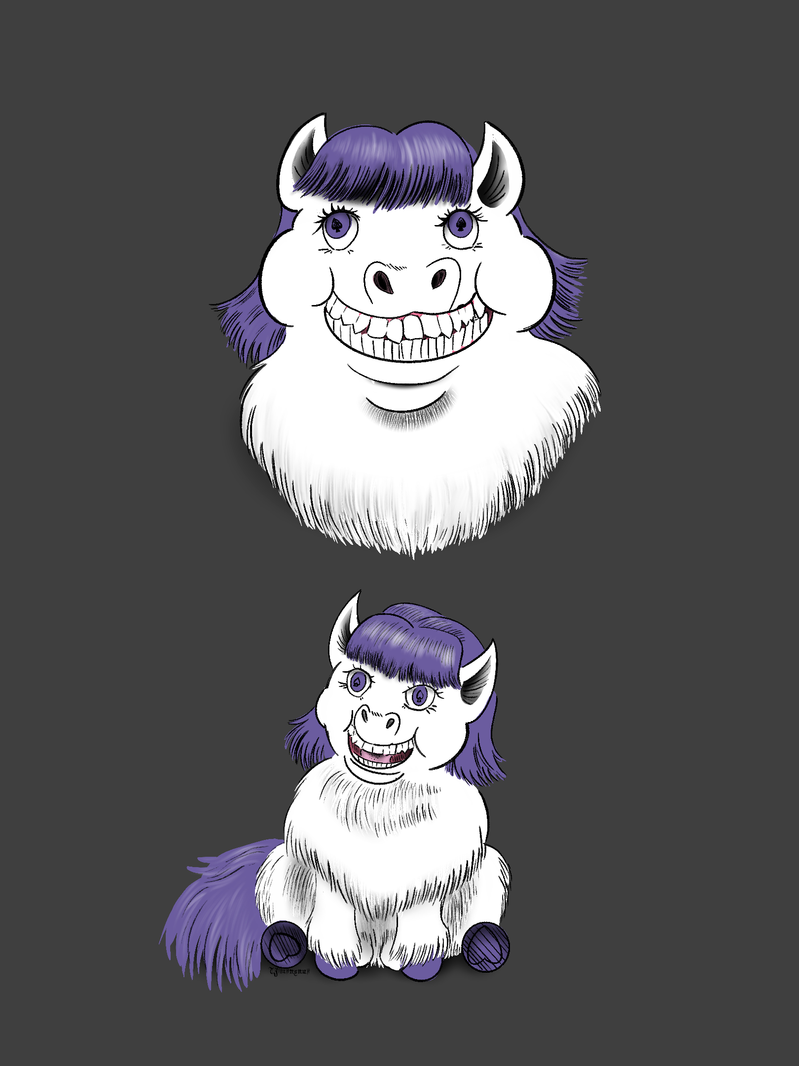No problem they were fun to draw. The Different designs and backstories are really cool. Both have extremely different personalities that reflect the designs. While Princess has a softer color palette with a longer mane an tail more lanky limbs and more equine features. Angela has a more straight lace bob manestyle with spade