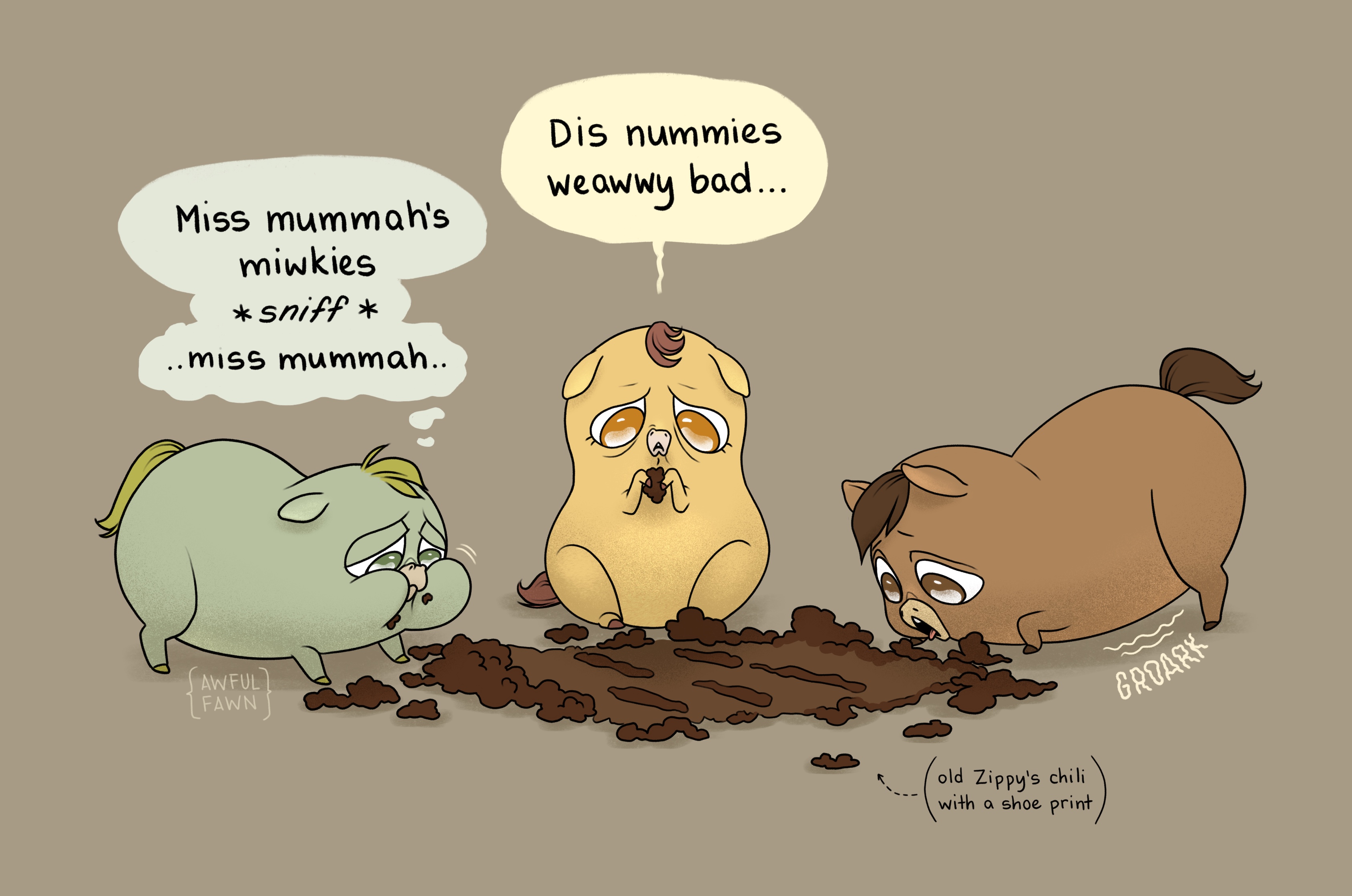 A trio of foal siblings trying to make it through fluffies-vs-nature without it instantly going to abuse sounds pretty neat.