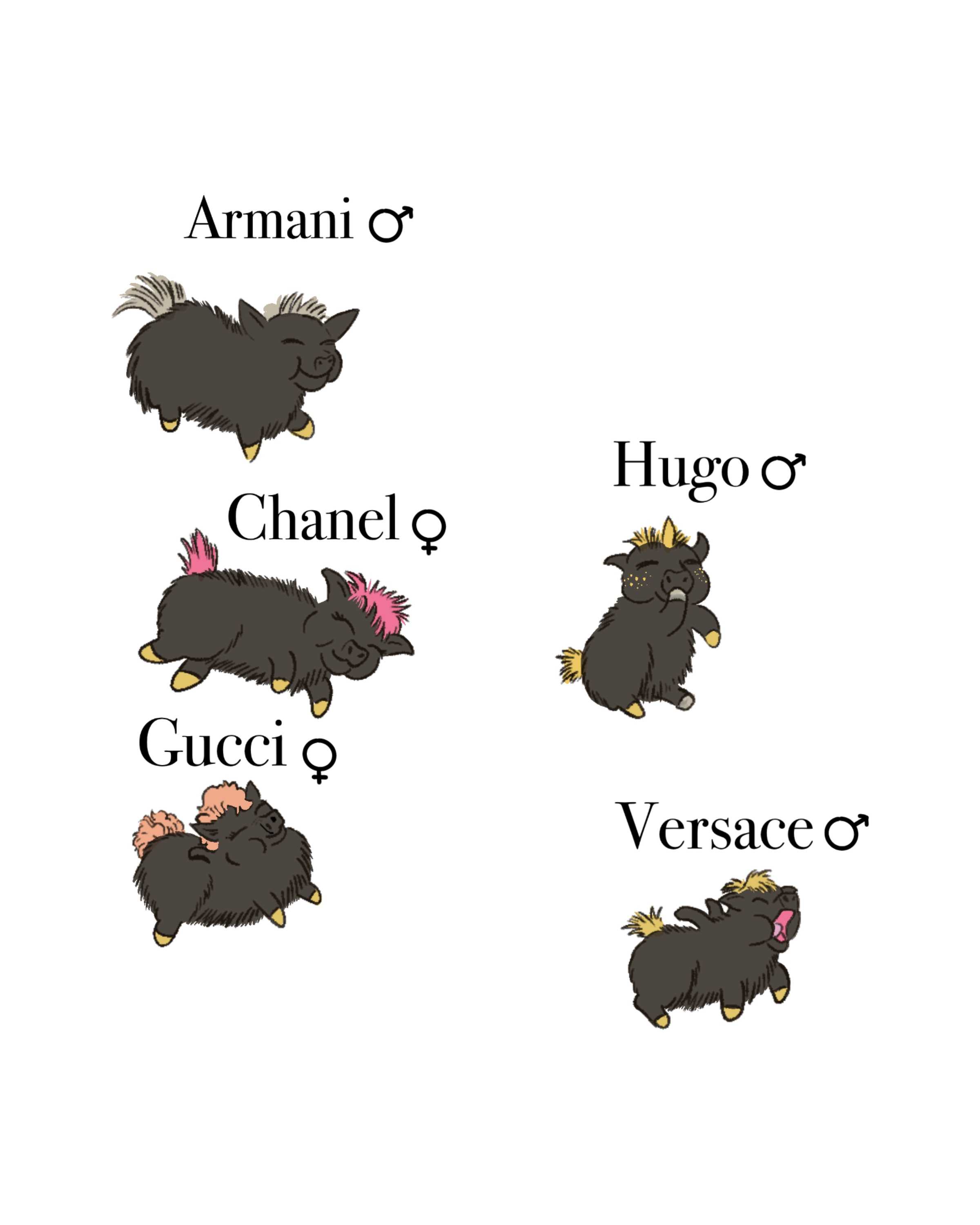 Bonnie thought long and hard about happy names, happy words, happy memories. She recalled that when her mother used to come home in a state of absolute elated bliss, it was normally due to the fact that she had gone on what she called a ‘shopping spree’. Claire would come home with large bags full of vibrant and beautiful clothing, and as she showed them off for the young mare, she would proudly state that they had special names that made them so wonderful, names that always seemed to bring her joy, because they were ‘designer’. Bonnie distinctly remembered hearing that she was also ‘designer’, as was Orian, and so, possibly, her children deserved names just as fitting to their status.