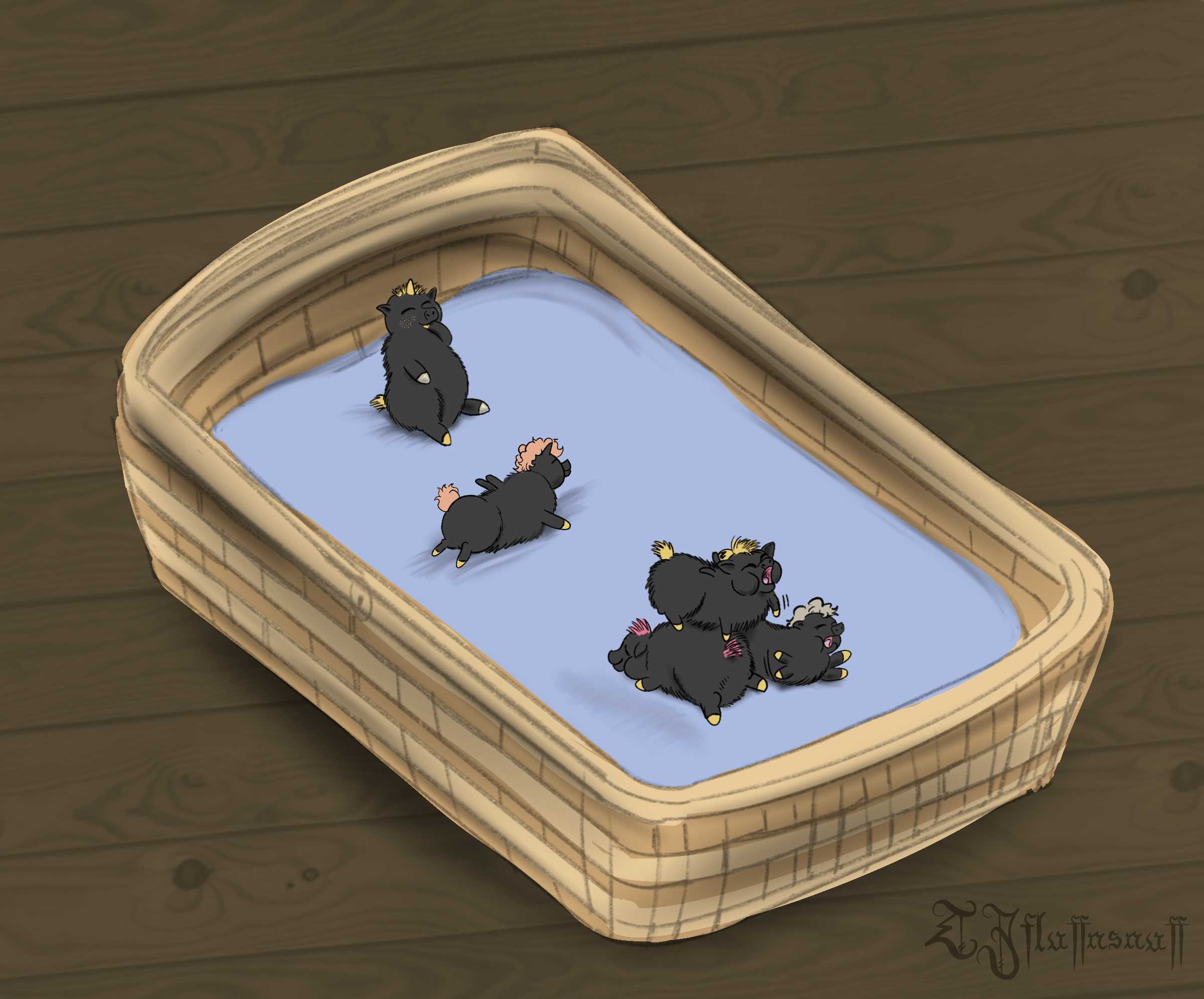 “Shhhh, bebbeh, pweas stawp! Nu be wouwd.” Bonnie hushed, but the child was without care. He howled and roared with all the ferocity that a toothless, fuzzy, blind jellybean could muster.