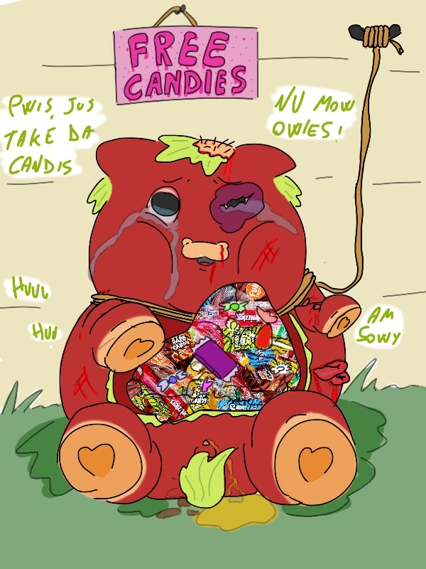 Dipshit feral bowl fluffy kept blasting shit and terrorizing all the fluffies and their little owners doing trick or treat, to steal their candies.
