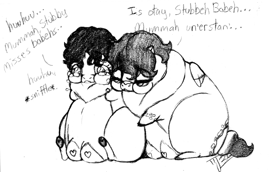 Stubby’s never seen a sensitive baby before. She doesn’t find him cute or appealing in any way but Daddeh asked her to look after him for a bit so she’ll be a good fluffy.