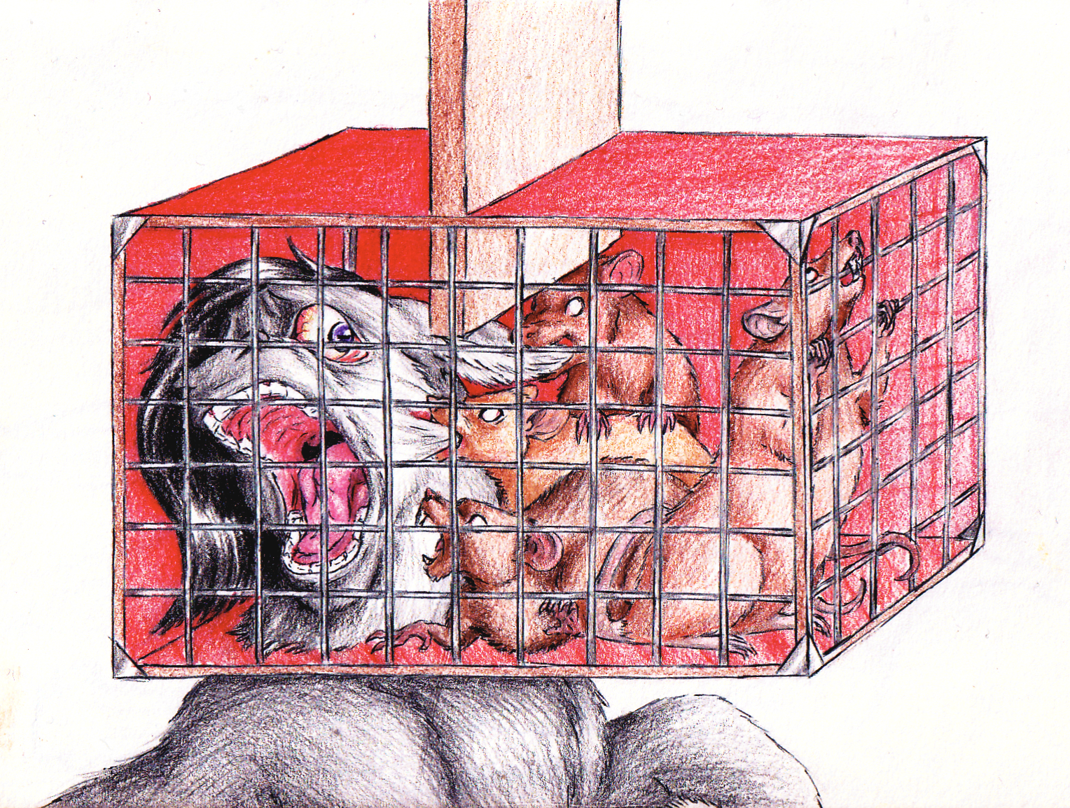 Reminded of one of those historical torture/execution methods where cage with rats in it would be placed on the belly of someone with hot coals on top so the rats dig through the wood bottom. Starve the rats and once they hit flesh will dig, eat, and burrow deeper.