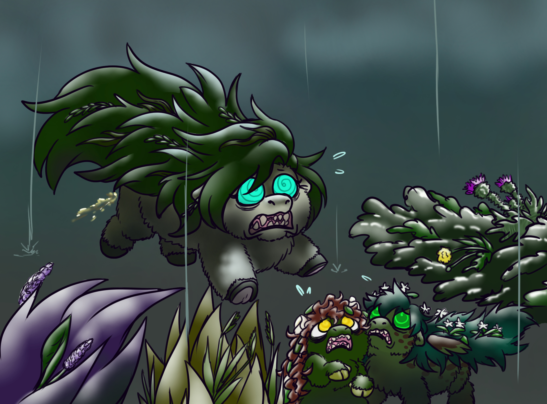 “Nu be tuu suwe, kewpies nee’ tu awways watchies out! A Magic Munstah couwd be hidies anywhewe-” Catfish warned, suddenly cut off by a flash of light and a crack of thunder. Instantly the kelpies shrieked, scrambling in every direction and nearly bowling each other over in panic.