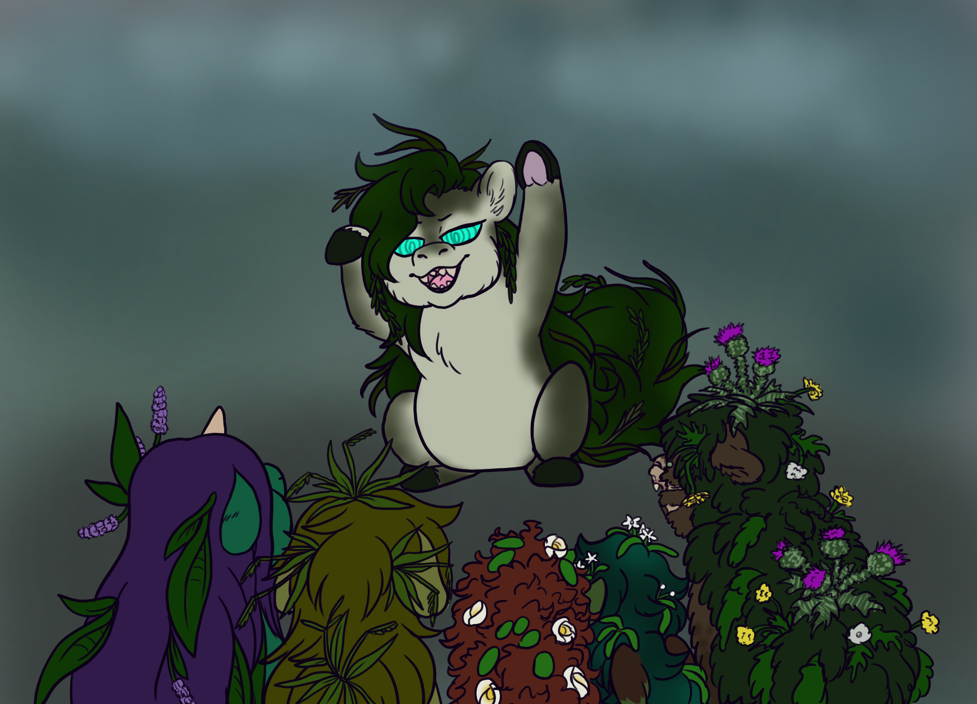 “Catfish wait untiw da munstah was nummin’ da twee munstah, spiwwin’ it’s tummy sketties with one big, shawp cwaw, an’ sneakied 'way! Magic Munstah was tuu busy wiff nummies to chase Catfish!” She answered with a triumphant smile on her face. The rest of the kelpies ‘oohed’ and ‘ahhed’, clapping their hooves at Catfish’s thrilling story and successful escape. Pickerelweed’s foal huued, scared of the story of the Magic Monster.