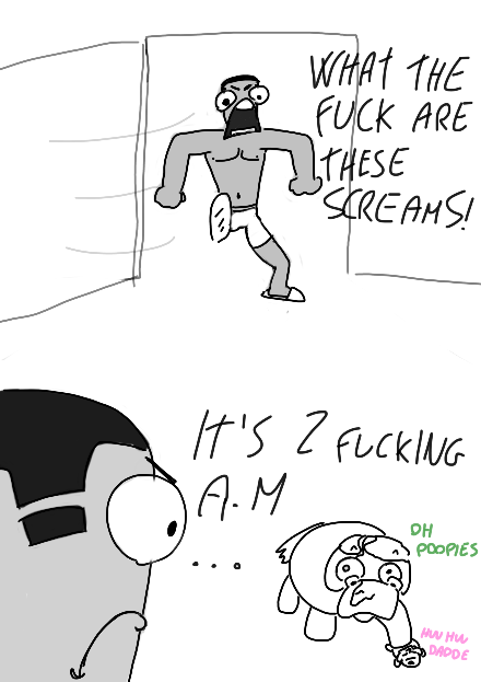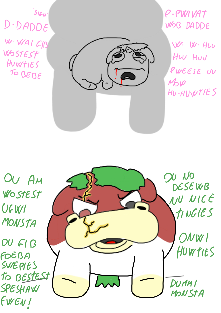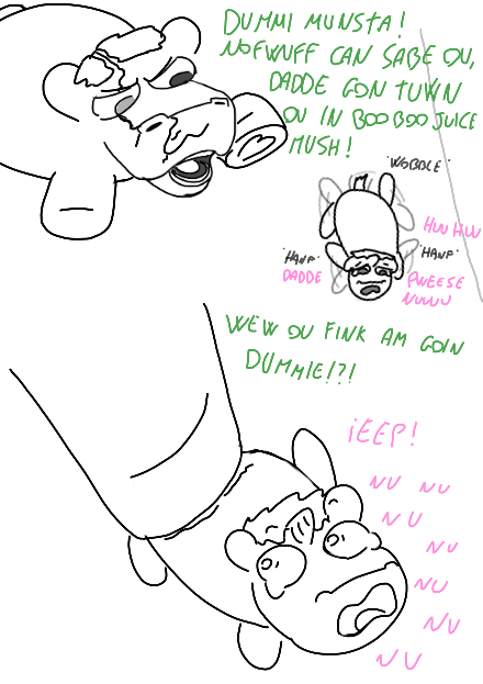 The weird box answer would be babbeh did kill mummah, and the sadbox would be if mummah tripped on babbeh and died.