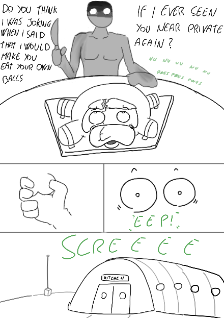 Would be interesting if with the scars on daddeh and the name “private” if there was some grenade or something and the mummah shielded the babbeh leaving babbeh unharmed and Gordon the nasty scar.
