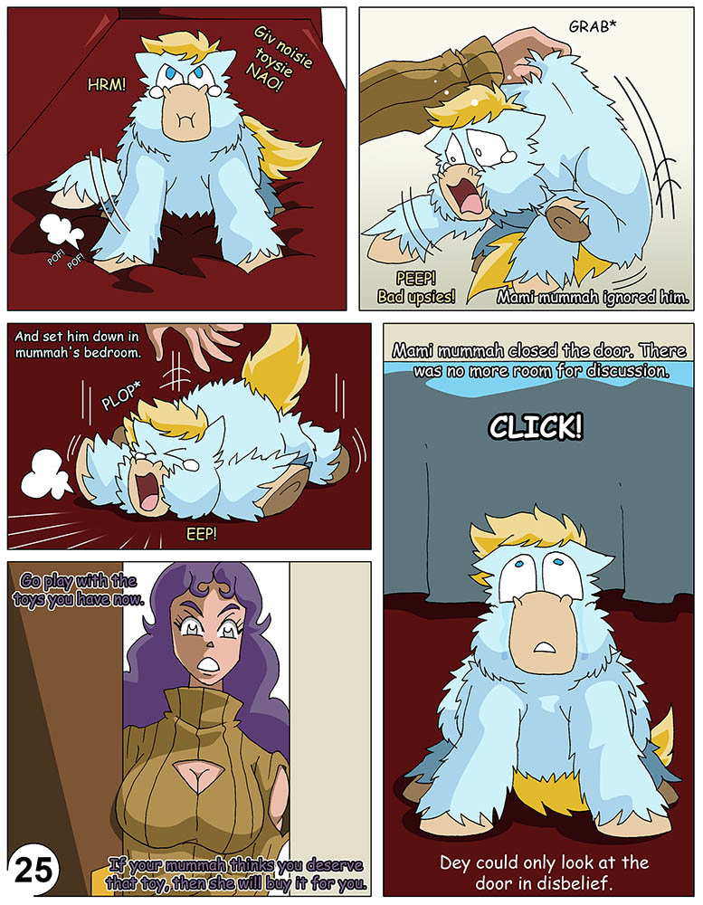 HAHAHAHAHAHAHAHAHAHAHAHAHA! DAMN! This is the best day of my life! It’s always so funny when a little brat like Dey doesn’t get what he wants! I wish this comic had a dub so I could hear Dey screaming and throwing his tantrum!