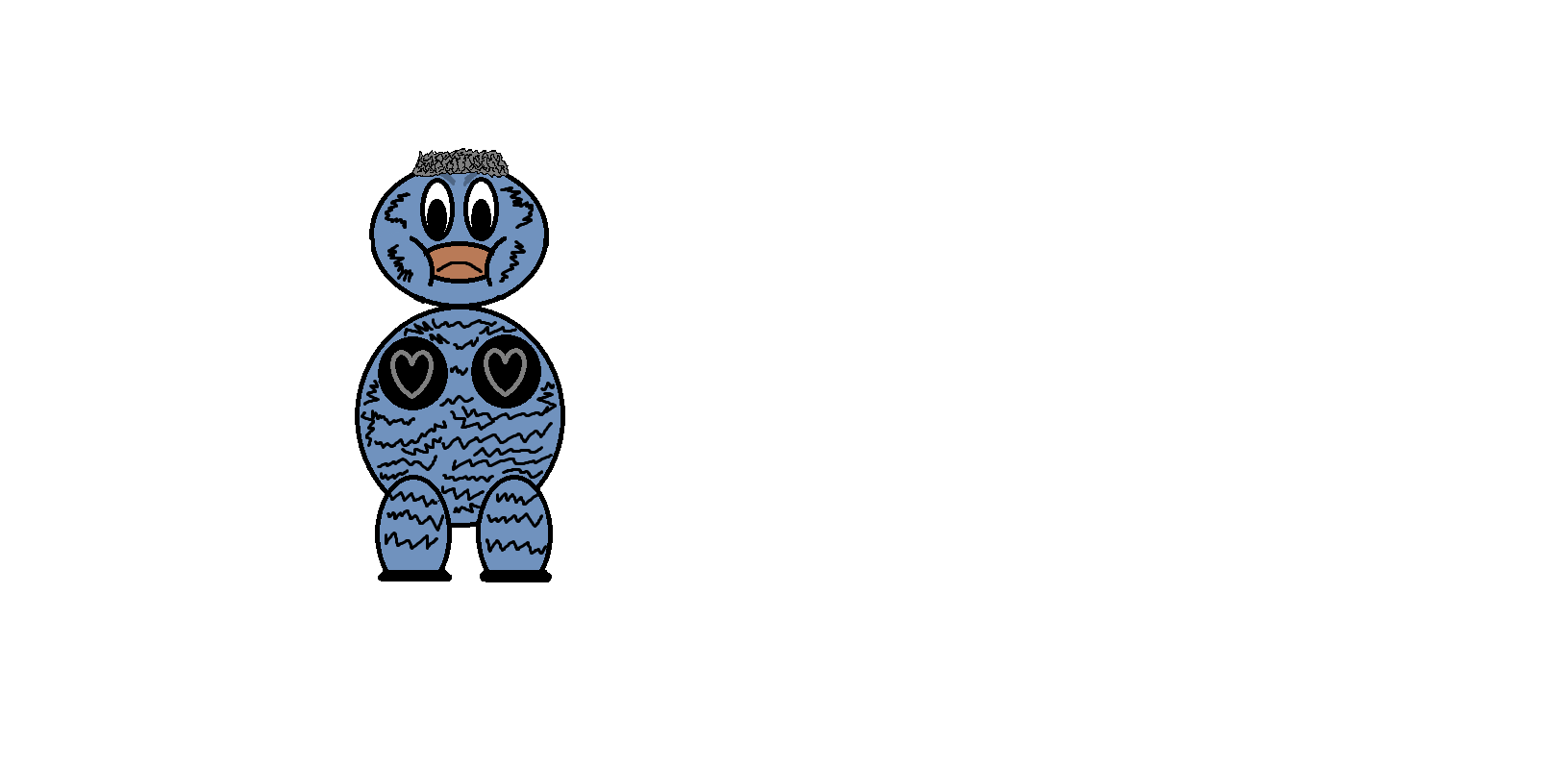 My advice is… try to draw fluffies from a few different angles and poses, but without using the circle tool. MS Paint or pencil and paper would both be fine. Right now you’re too early in the process for specific advice to not be overwhelming, so just keep practicing!