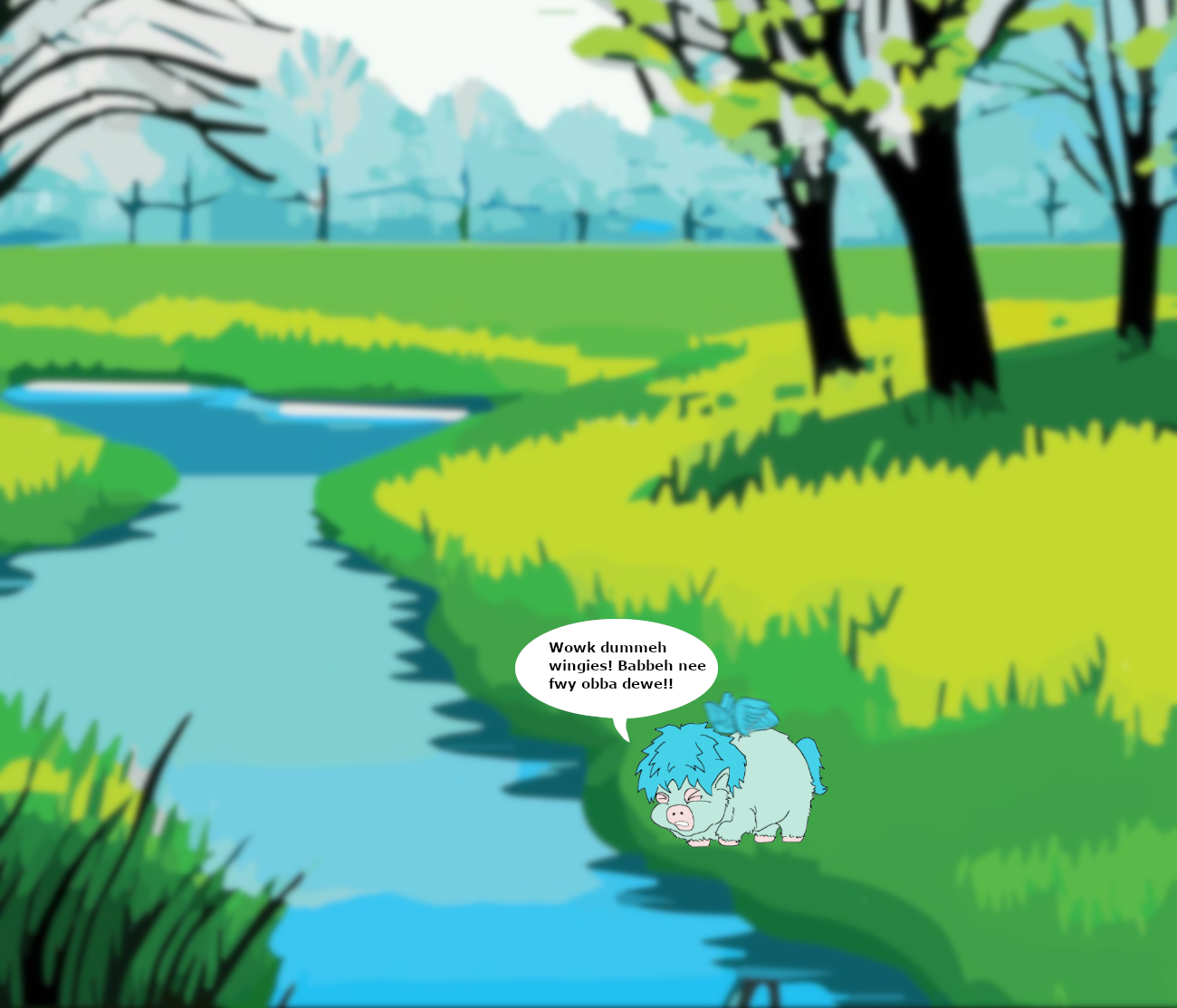 Suddenly, Mr. Leech squirms up the bank, to give Fluffy’s hoofie a hug! Fluffy is shocked and, while trying to dislodge Mr Leech, falls in the water and gets to meet (briefly) all of Mr. Leech’s brothers and sisters!