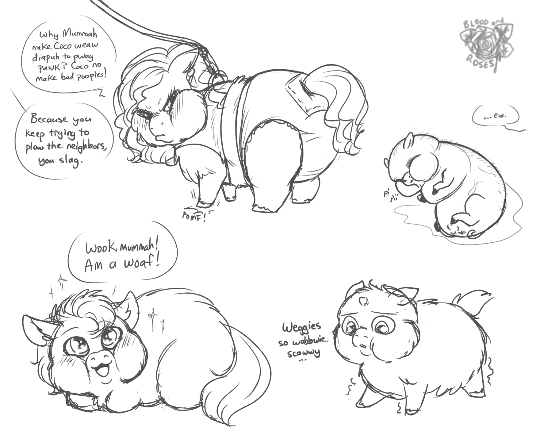 snicker Yep. Bamboozled. Plus, the embarrassment of wearing the diaper outside is part of the appeal, since the other Fluffies are gonna make a big fuss about it.
