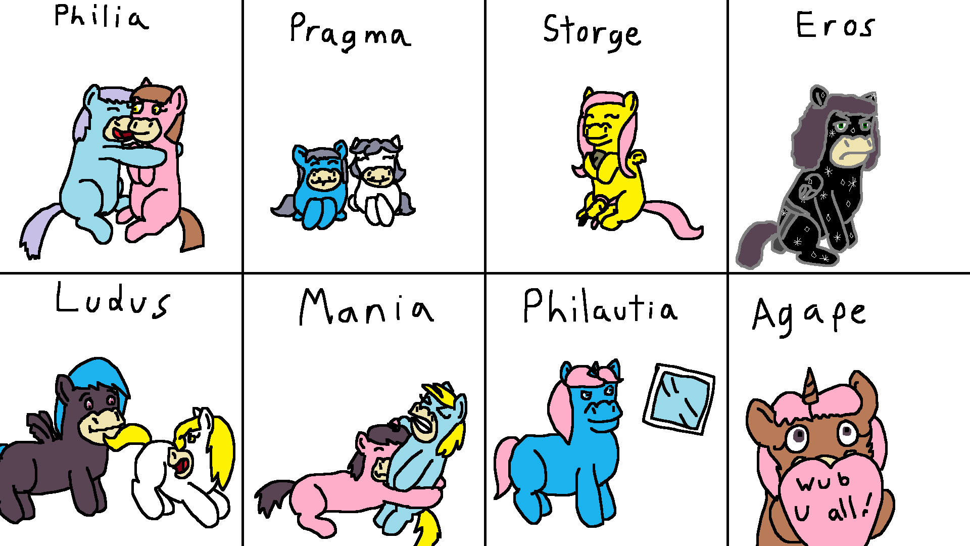 I’m going to have to look all these up. I know philia, eros, and agape from church bit that’s it.