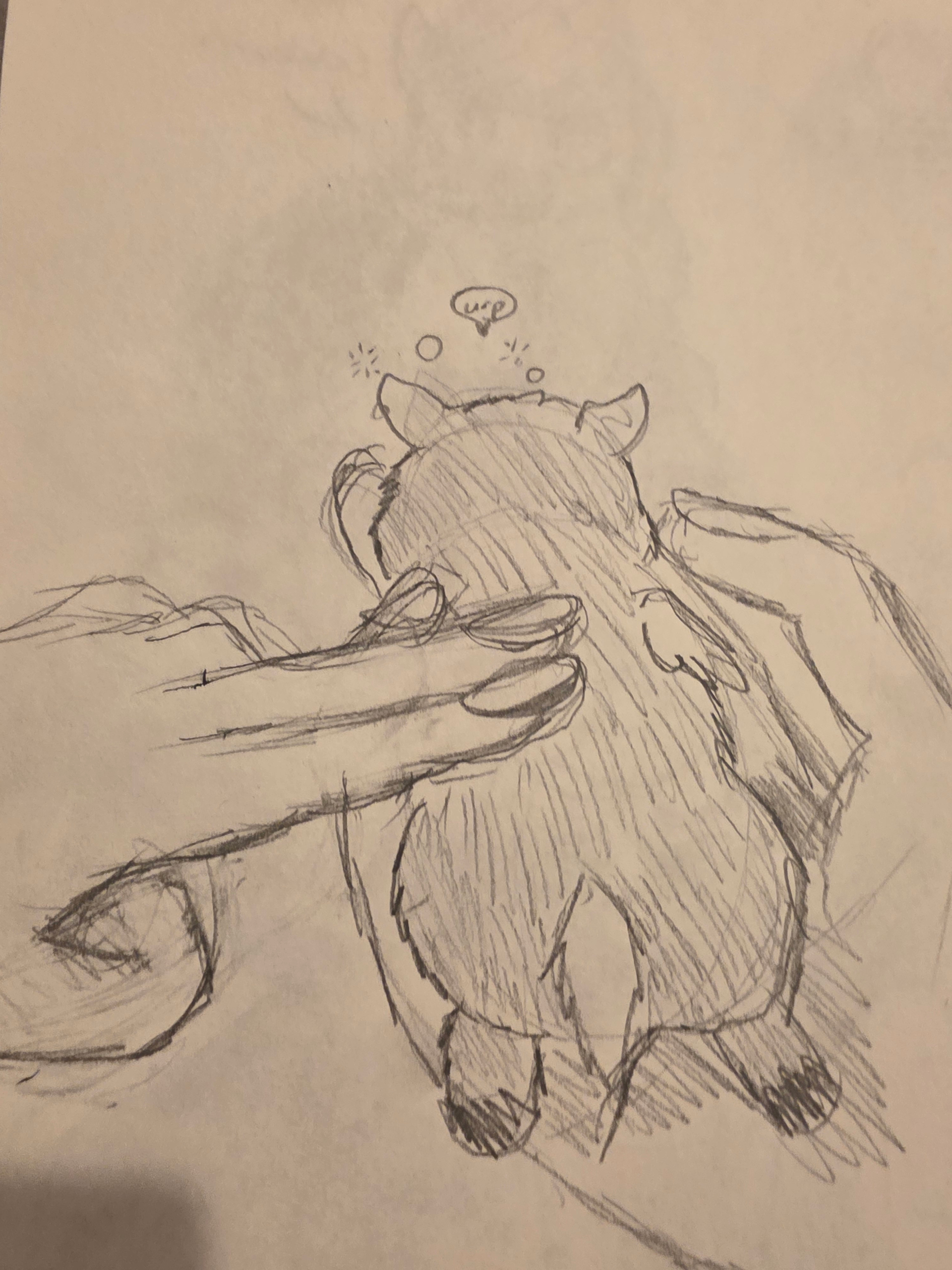 Lavender peeked out from the blanket and gave him a cheerful, “Taccoo!”