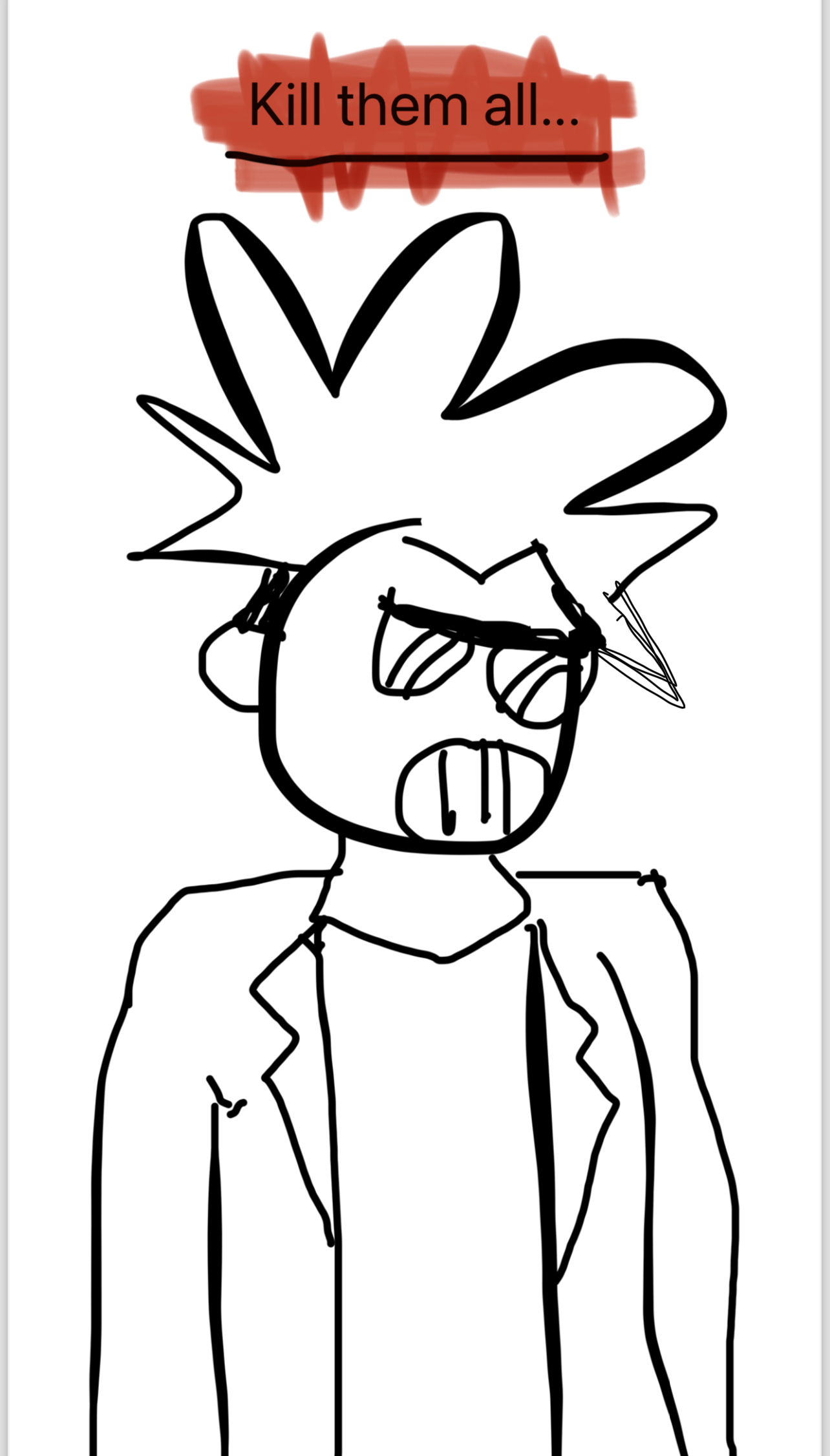 Bright brown and white split coat, orange streak mane, dull purple eyes.