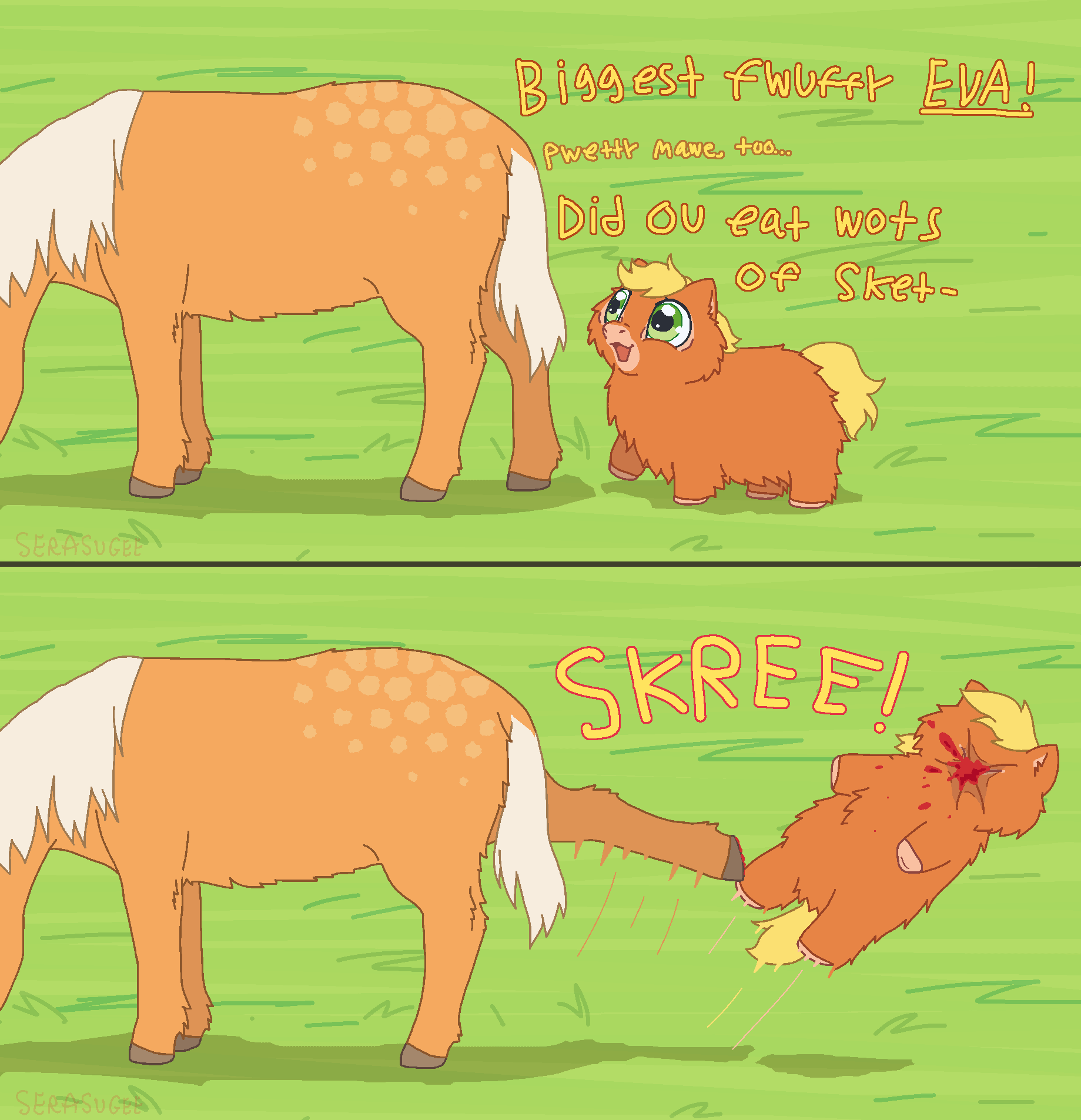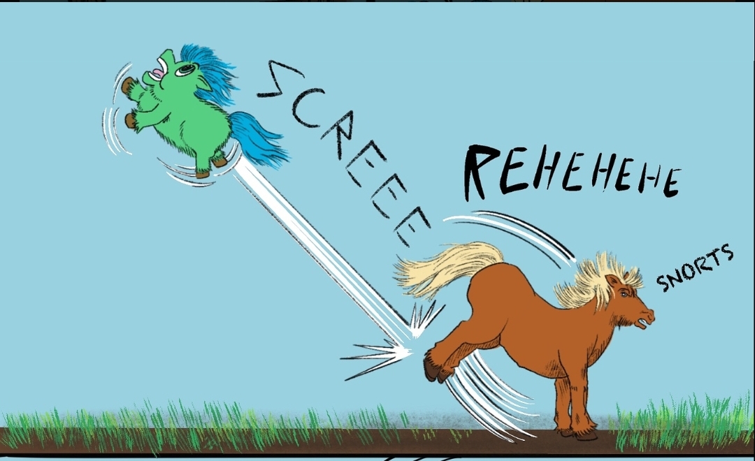 Lol. Yes! More randy fluffy stallions getting the crap beat out of them by real horses!