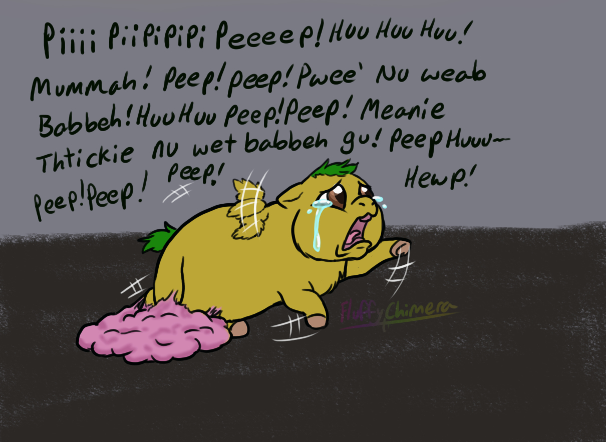 Baby poop: "Peep peep new daddy, you sabe babbeh ,chirp wub " chirpies scared.