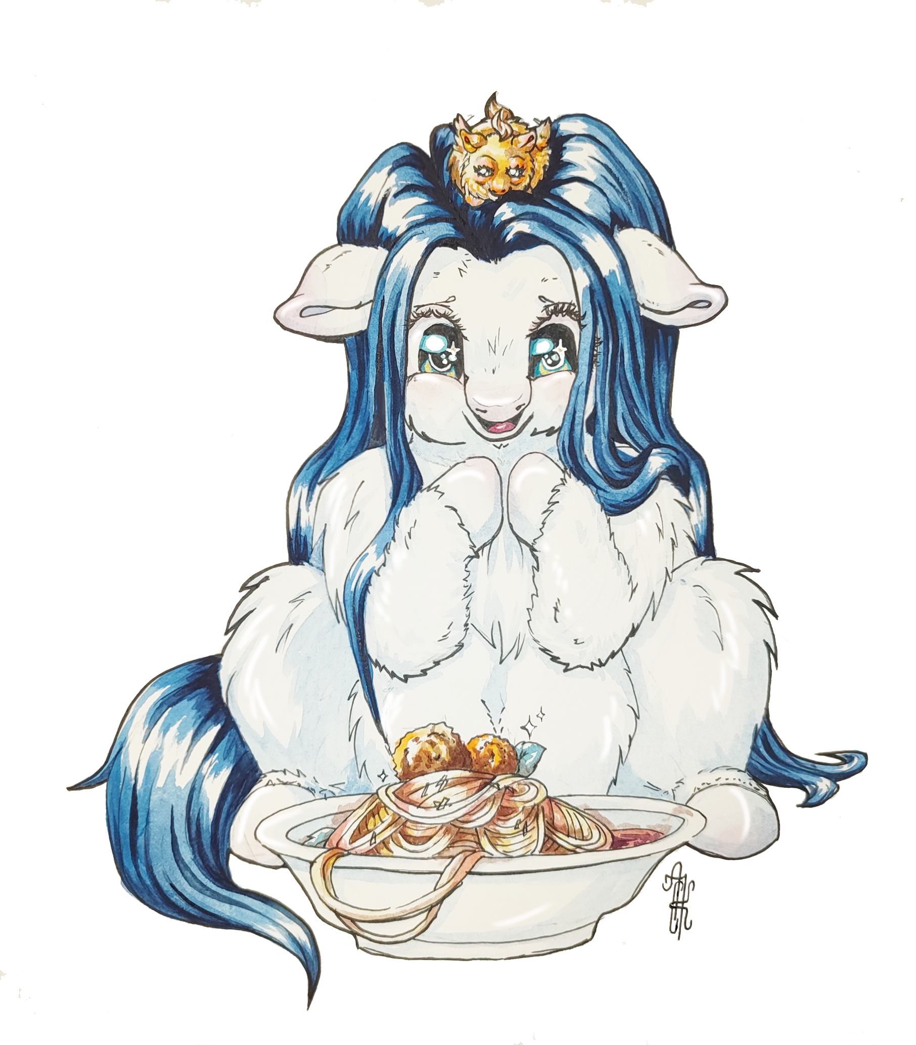 Lovely work. The spaghetti looks downright tasty. Also, the baby is officially named Crown.
