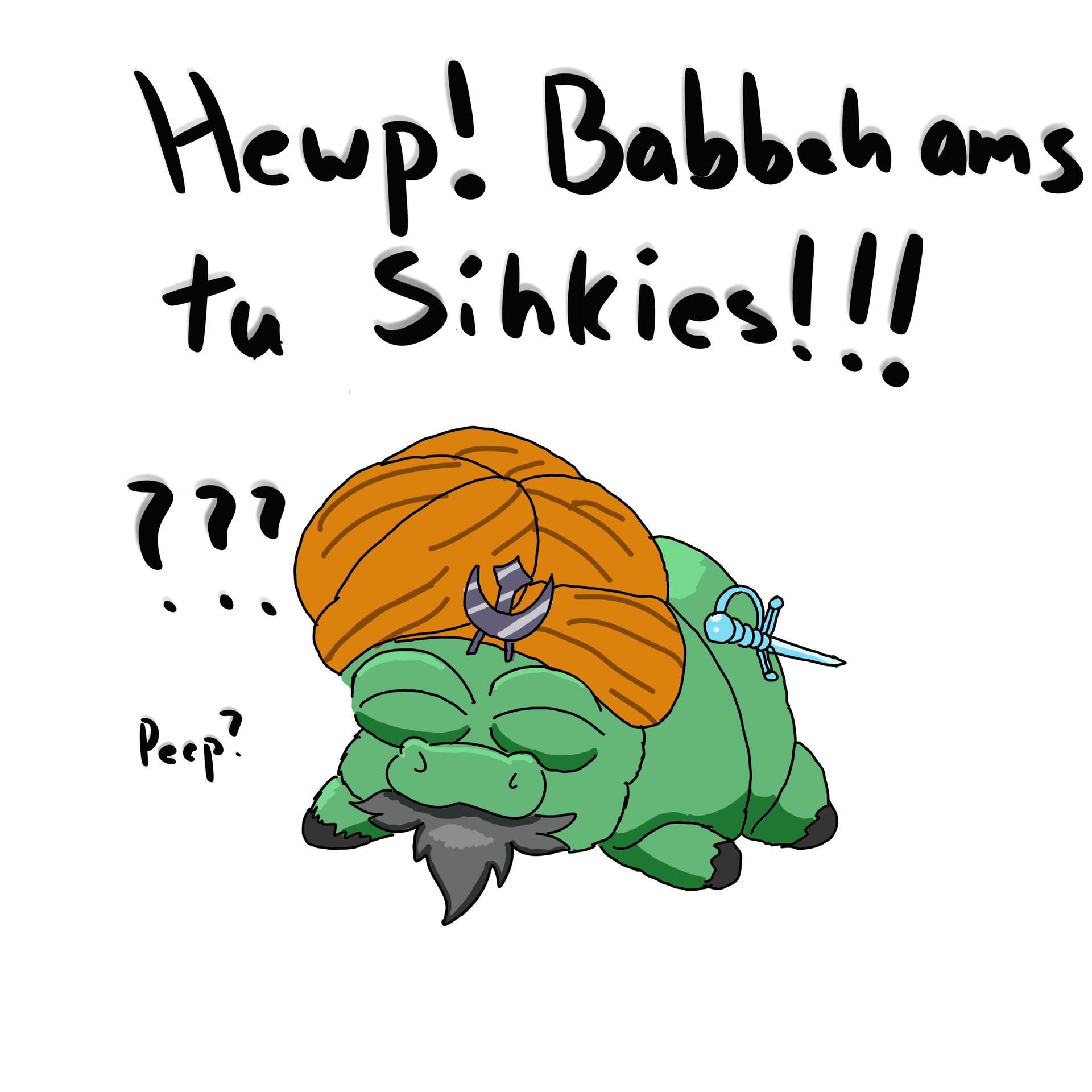 The joke is that “babbeh am sickies” is a stock phrase from mares for telling people that the foal is sick, and sick sounds like Sikh, and the babbeh is a Sikh babbeh.