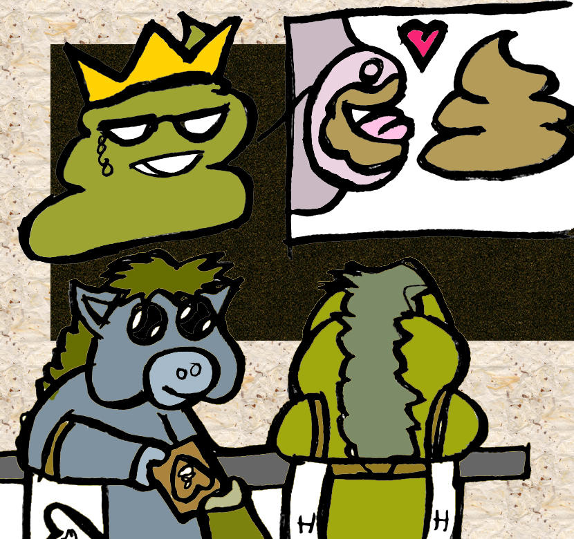 “Today we’re going to meet some Very Special litter pals whose love of poopies is so great that their weggies came back! “Fecal Friends” or “Poopmunchers” are chosen from the best litter pals who eat ALLL the poopies!”