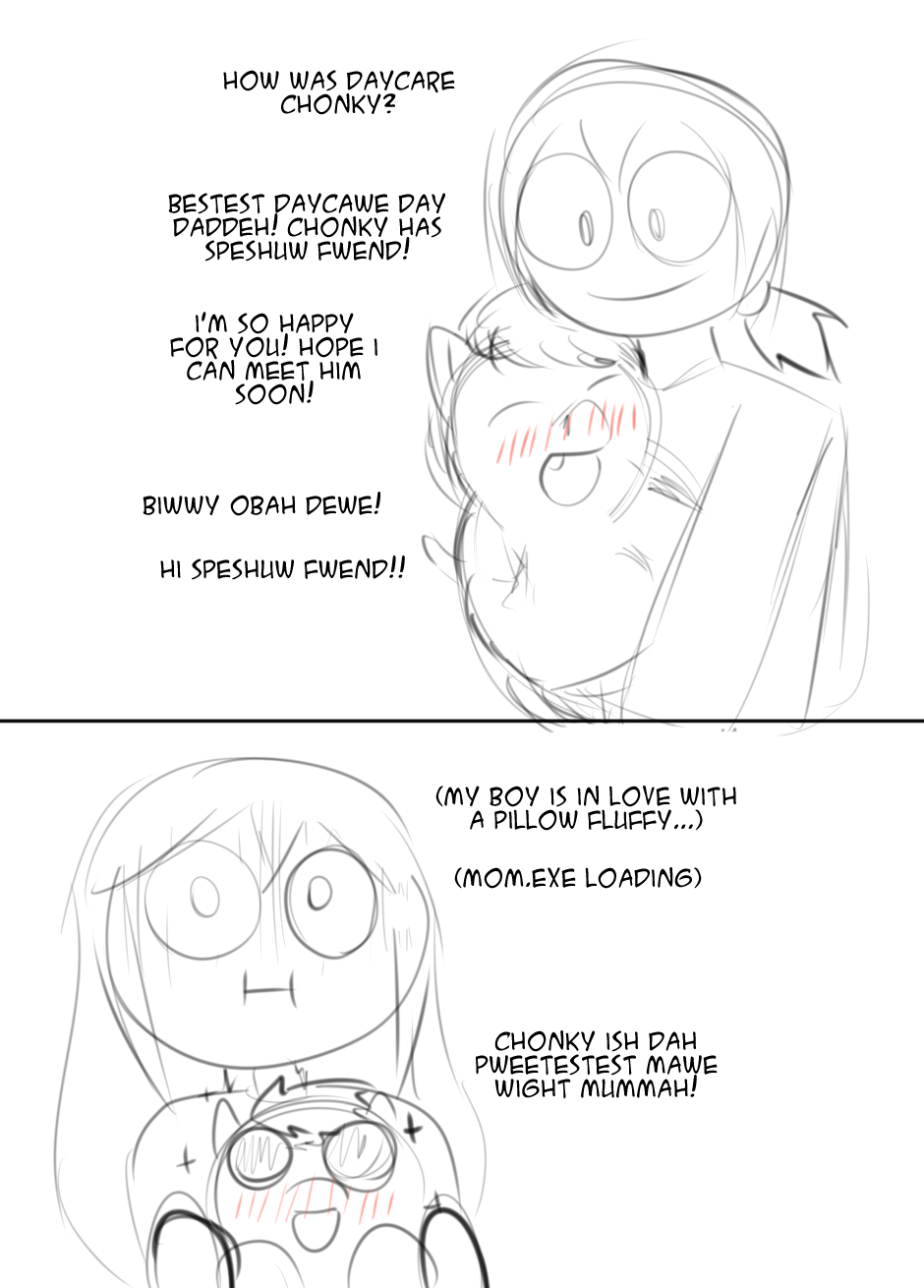 For someone who obviously loves fluffies, anyone who owns a pillowfluff will be viewed with suspicion initially. Presumably once she finds out that Chonkey was a rescue fluffy she won’t have any issues with it.