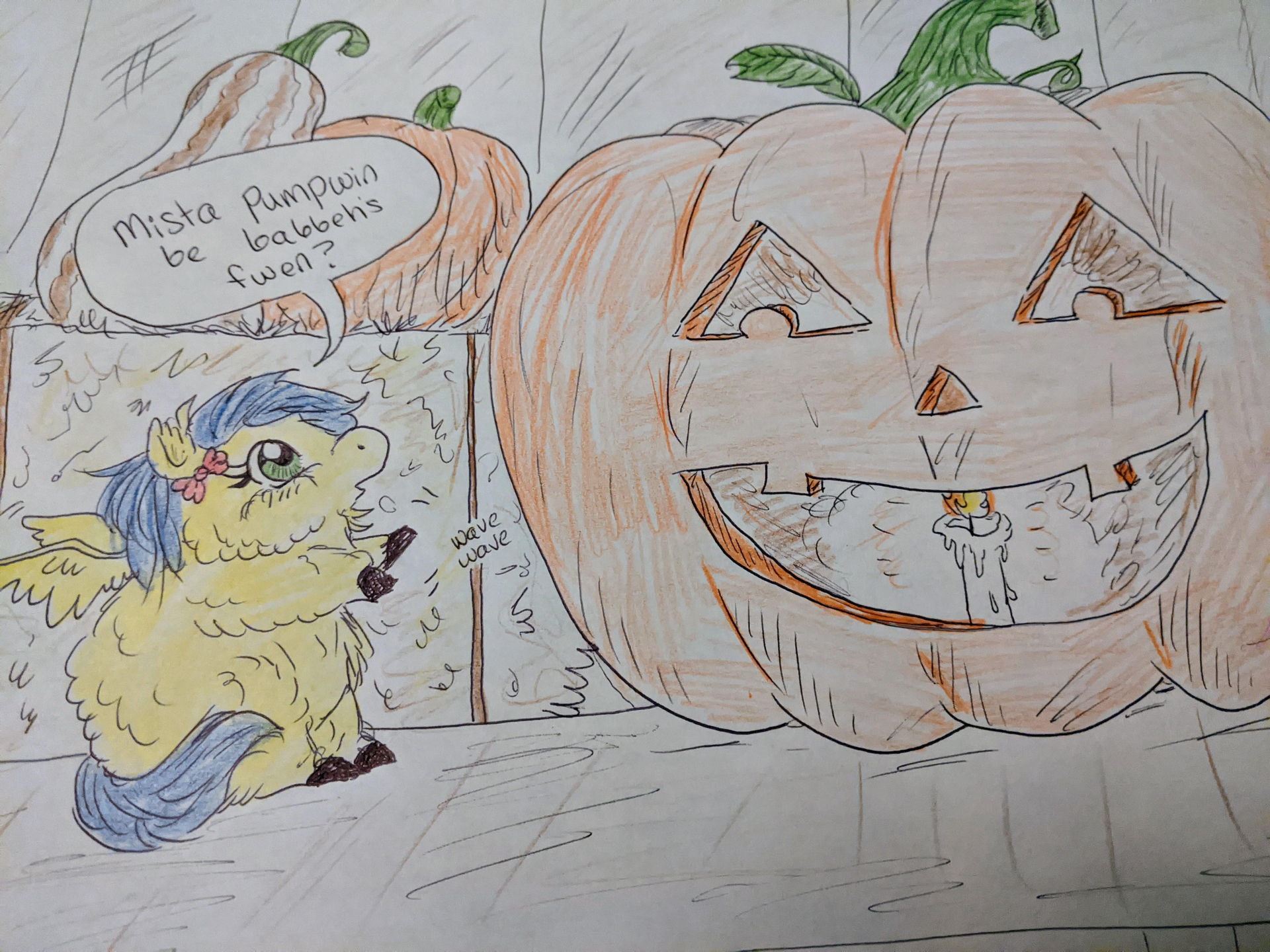 I’m surprised that the fluffy isn’t scared of the jack o’ lantern.