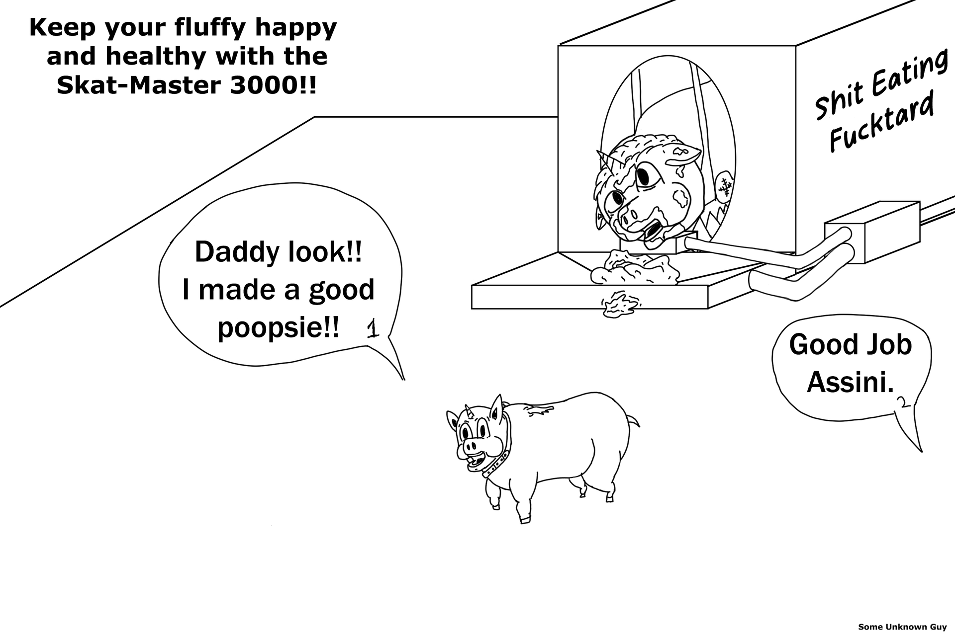 This is my own take on a Litter-pal. I call it the Skat-Master 3000. It provides easy access to both sides of the litter pall. To increase the pain and suffering of a litterpal there are now spikes under the suspended fluffy. The fluffy is held in a sling that is set on a scale like extension. This allows a perfectly aligned fluffy to shit their weight forward and back. The body will make contact with the spikes causing pain. The fluffy will then shift to stop the pain causing the other end of their body to contact the spikes. No matter what they do they will always be in pain. There are shock pads that make contact with the fluffy in the sling. These pads come with a remote to shock the fluffy with a press of a button. There is s trough that is connected to the front and rear of the litterpal through a sewage pump. This constantly fills with excrement right in front of the fluffy. No matter what the fluffy does it will always have excrement right in front of its face. This was designed with some ideas from others. Let me know if theres anything that could be added.