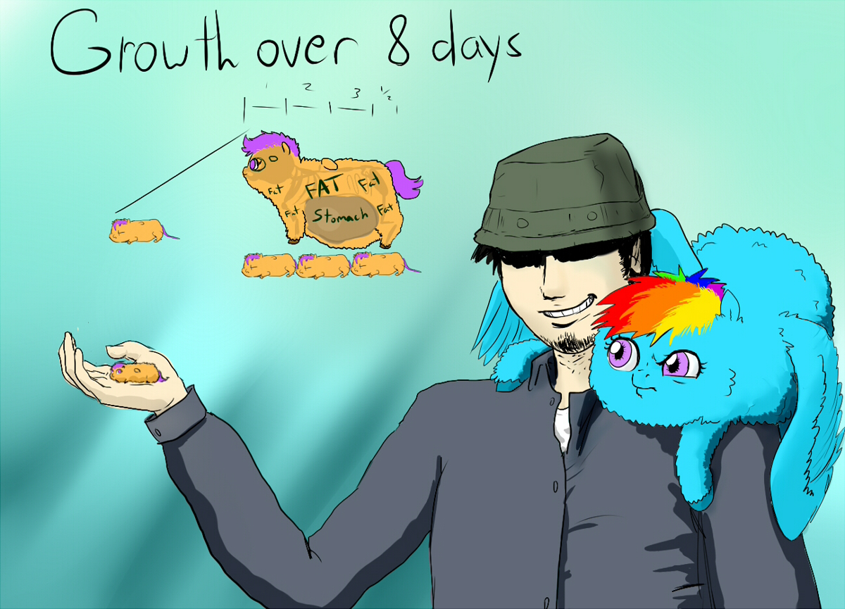 Based on the square cubed law, I think that would mean Scoots grew 12 times his weight in just 8 days.