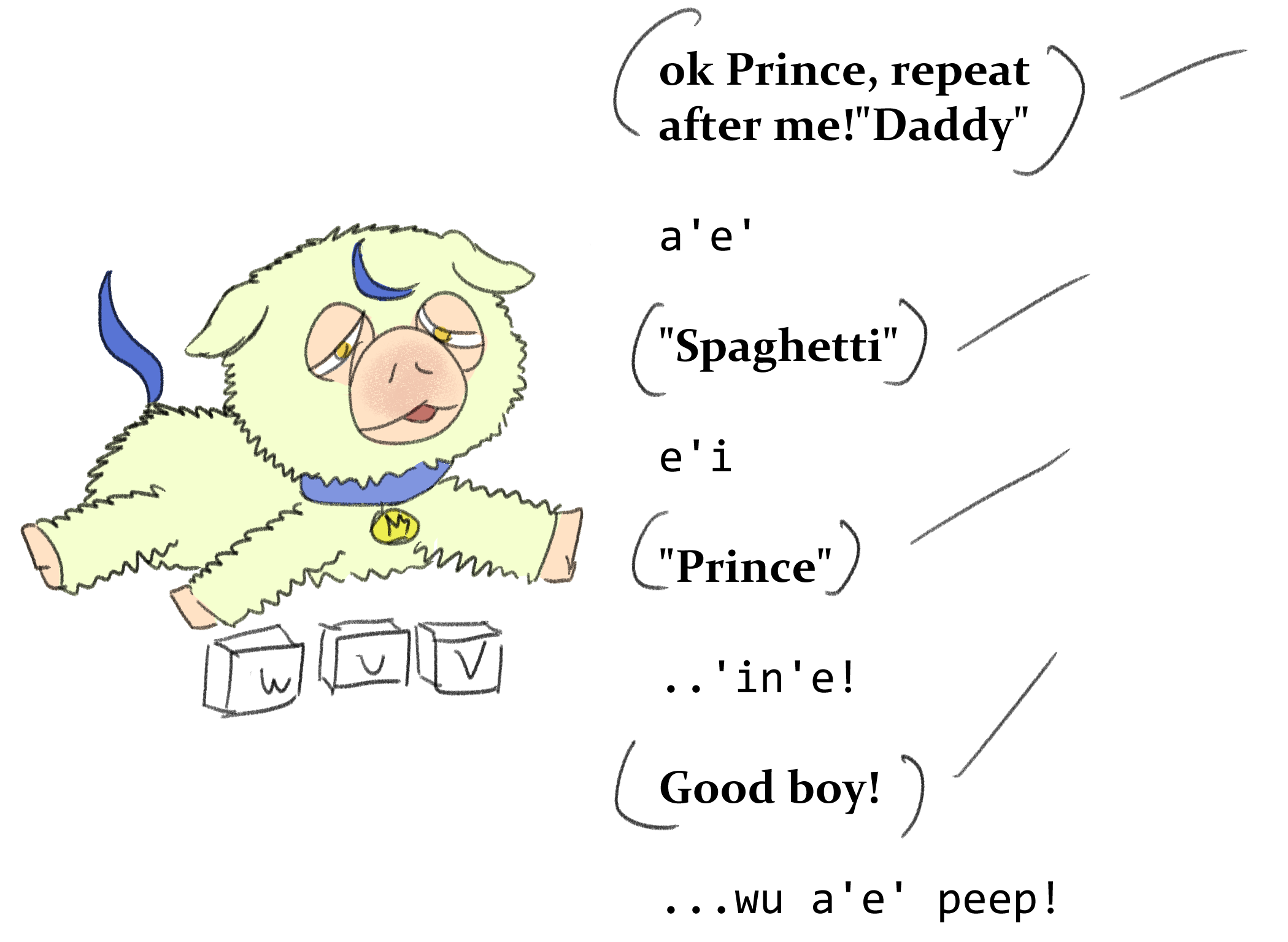 Look at him go. He’s getting the vowels down, that’s a good start.
