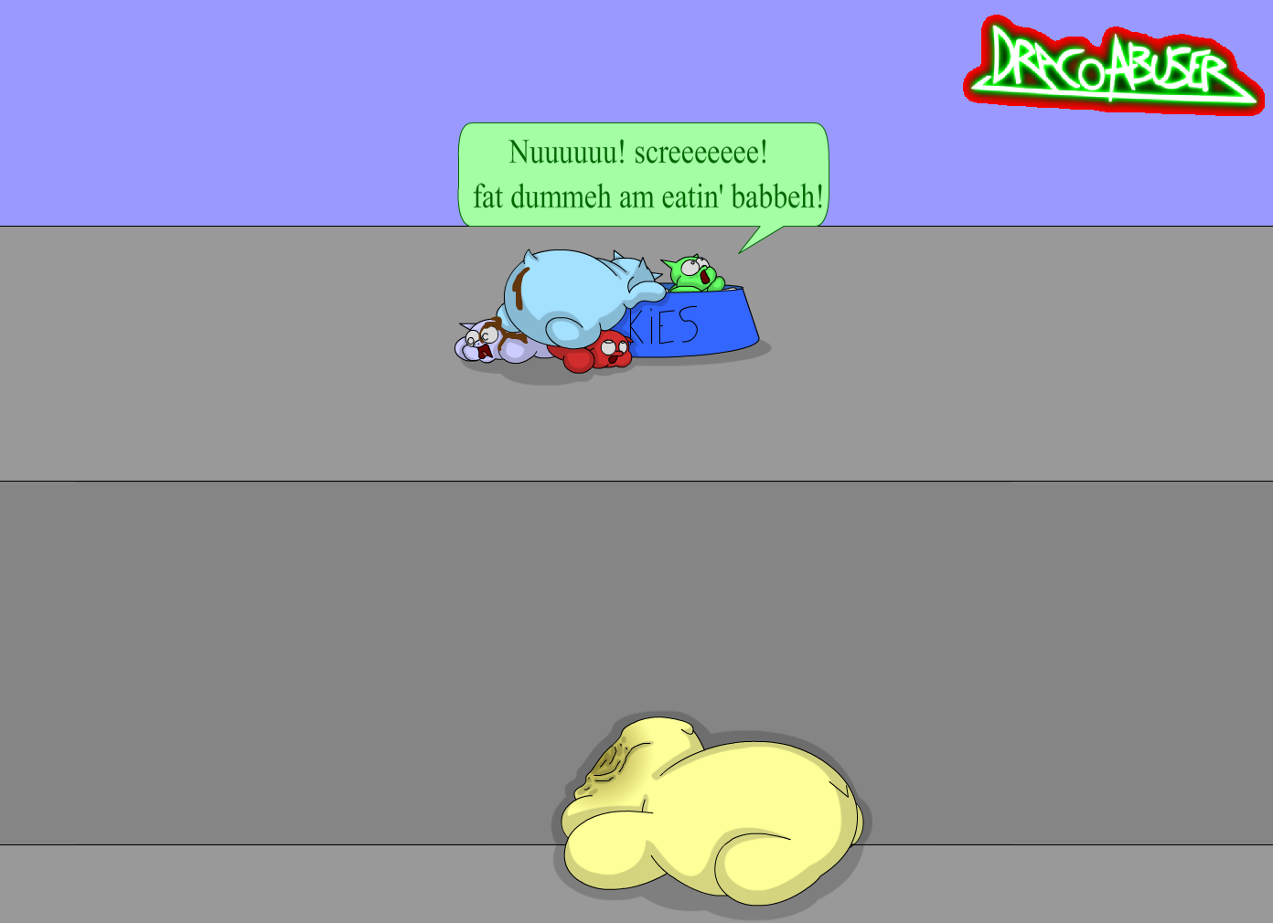 I like it. You kept the poop to a minimum…some artists overdo that, and I think your sizing for talkie-babbehs (relative to a standard dog bowl I guess) is perfect. I see a bit of Carpdime’s style in yours.