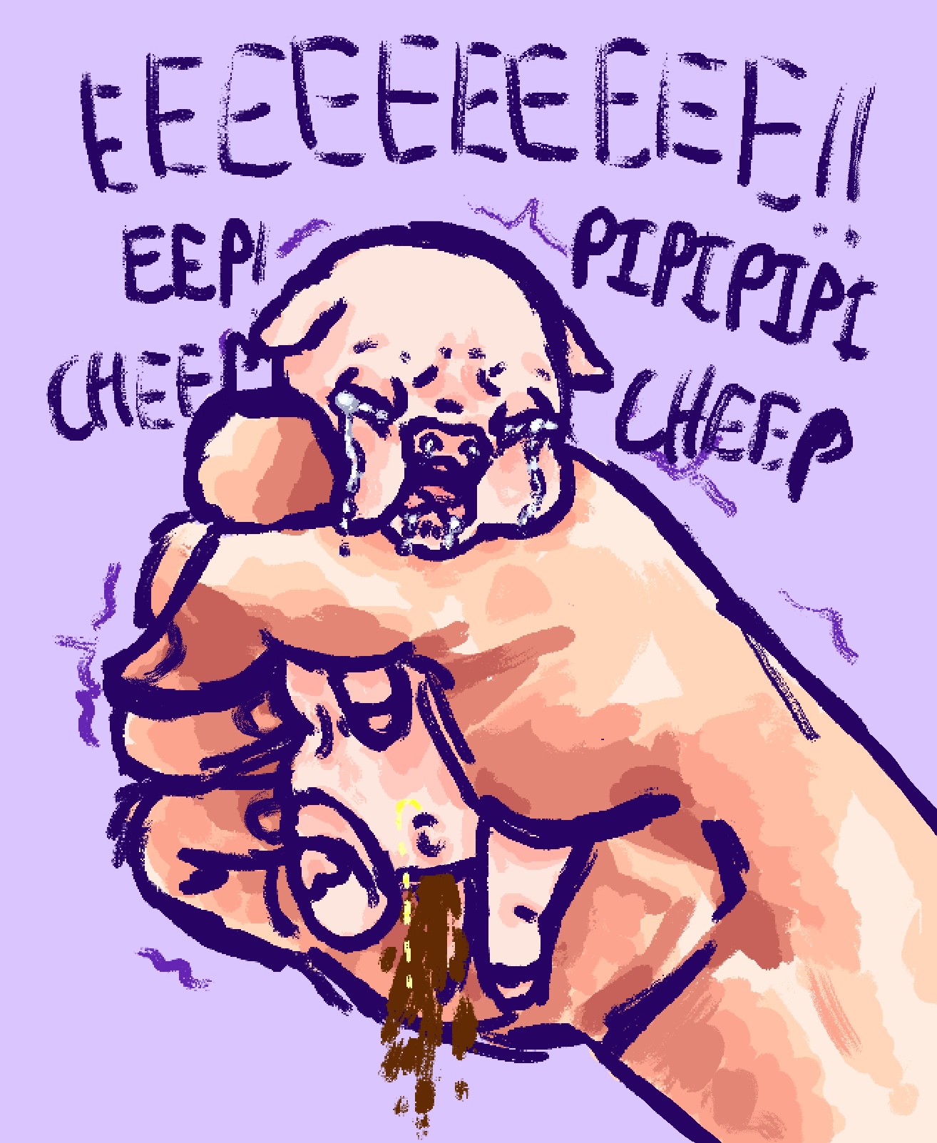I get such insane cute aggression with my chirpies, I just wanna squeeze one, so I drew one getting squeezed