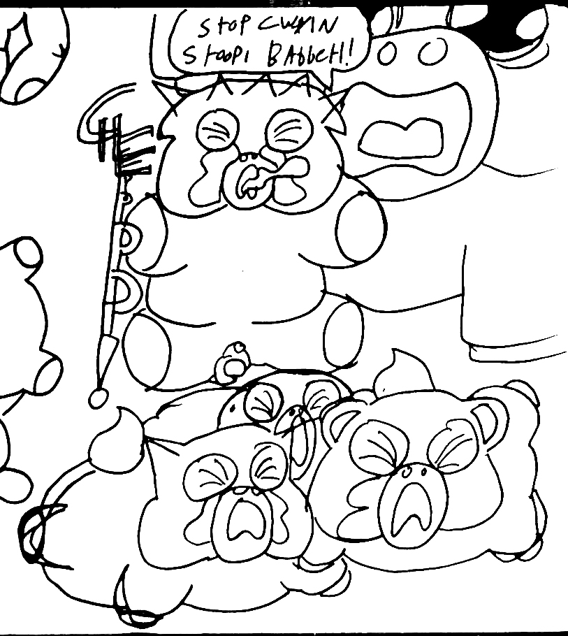 My failure to make it clear that the defective chirpy was upsetting the others and pushing the mummah or daddeh to the brink also contributed to this. I may eventually develop this one, but i was also frustrated with how much cleanup would have needed with this one.