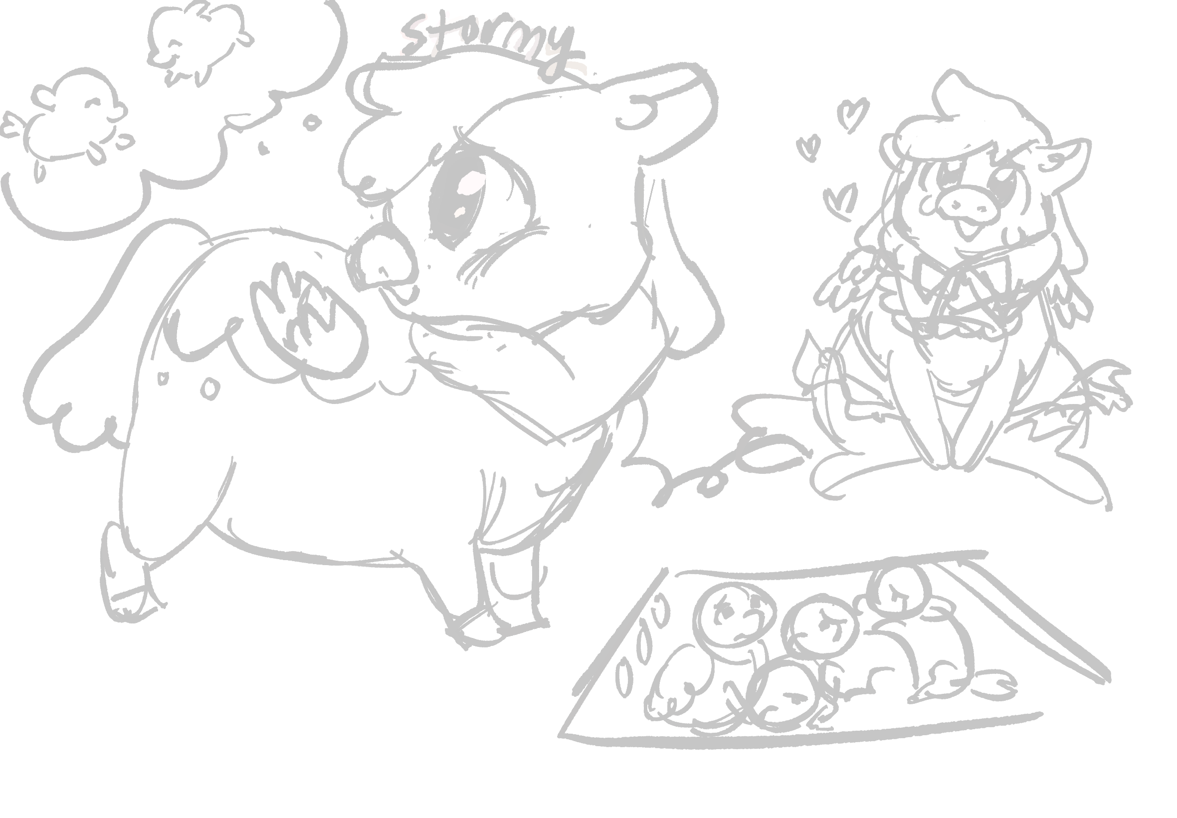 Stormy’s patience broke, and she swatted Grape on the nose. Grape’s eyes went wide and filled with tears. Mummah had given her sorry-hoofsies! Mummah had hurt her! She began to bawl, rubbing her poor little nose with her hooves. Stormy hugged her immediately, a hot sick wash of guilt ripping through her. She had promised herself she would never give any of her babbehs sorry-hoofsies again, and yet here she was! She hummed softly to Grape until she calmed, and then she sighed. “Nu hav to pushy, but stay hewe, otay?”