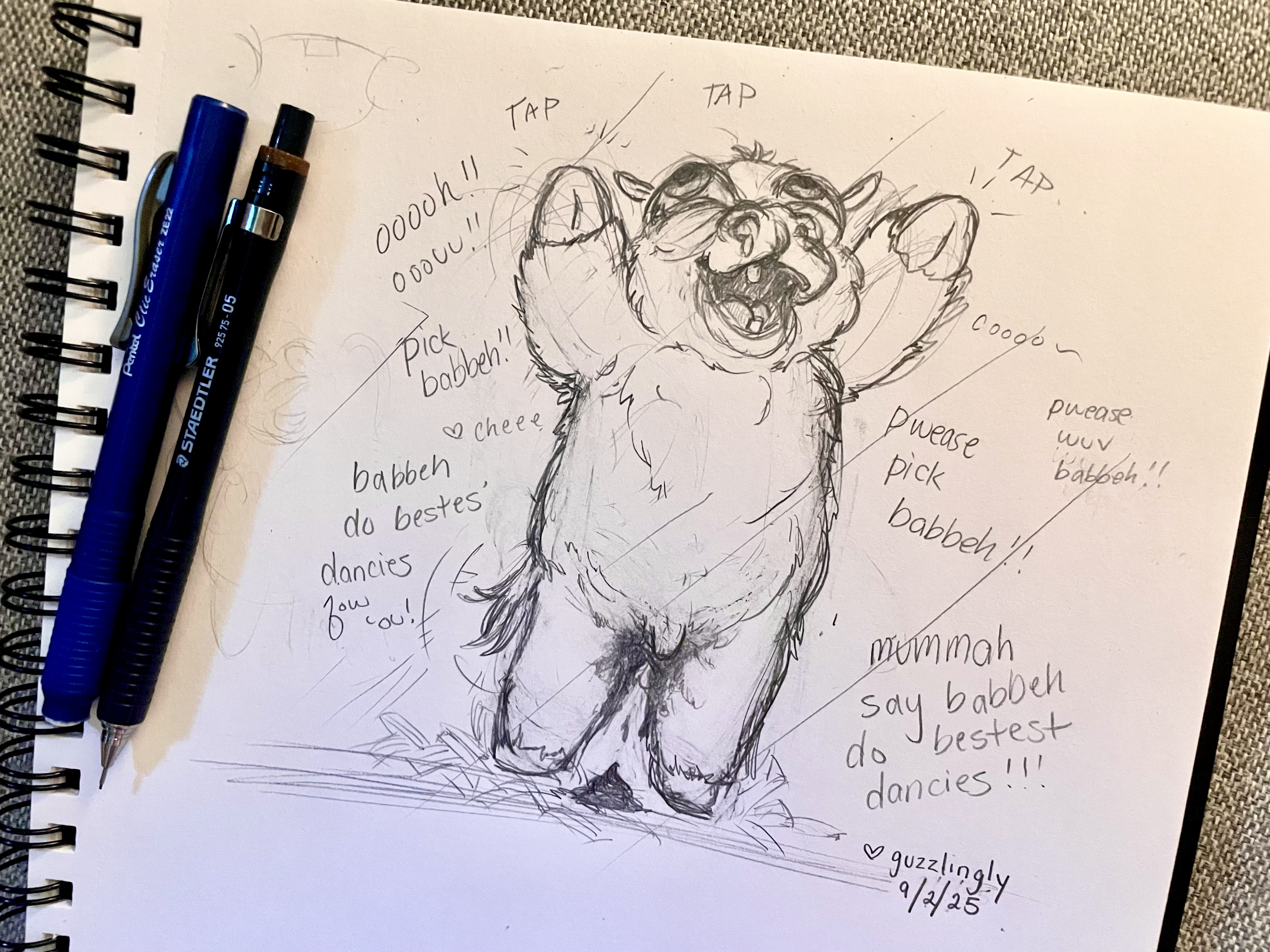 in saying that, this sketch isn’t colored, but it’s intended to be the orange babbeh from my most recent pieces. i remember a few people really liking it and asking for more, so i decided he will be my test subject for my comic.