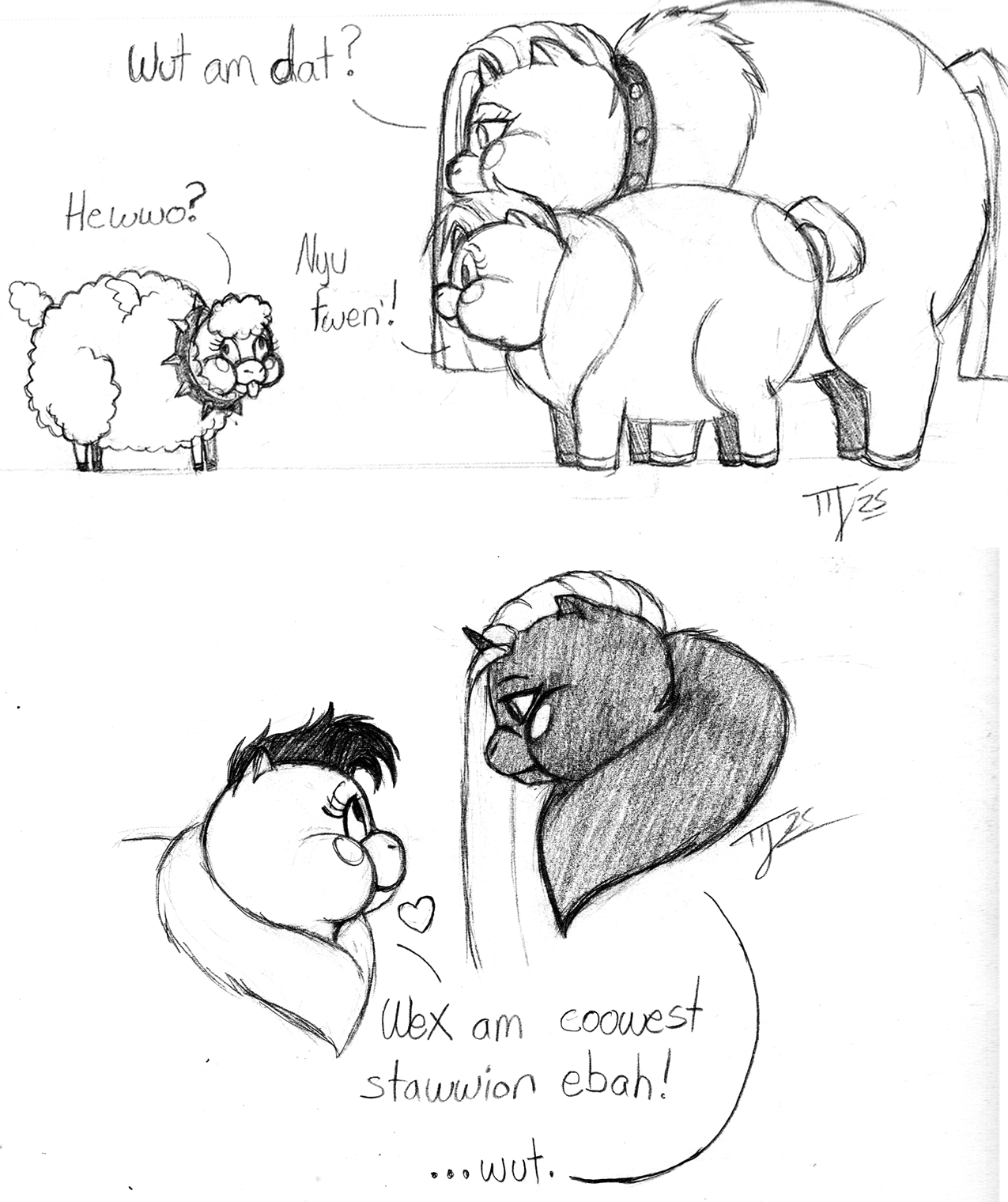 Humans are actually what I default to, art-wise. I just seem to have a tough time thinking of ways to incorporate them with fluffies. I’m trying though. I really want to contribute to the “sexy girls and fluffies” tag.