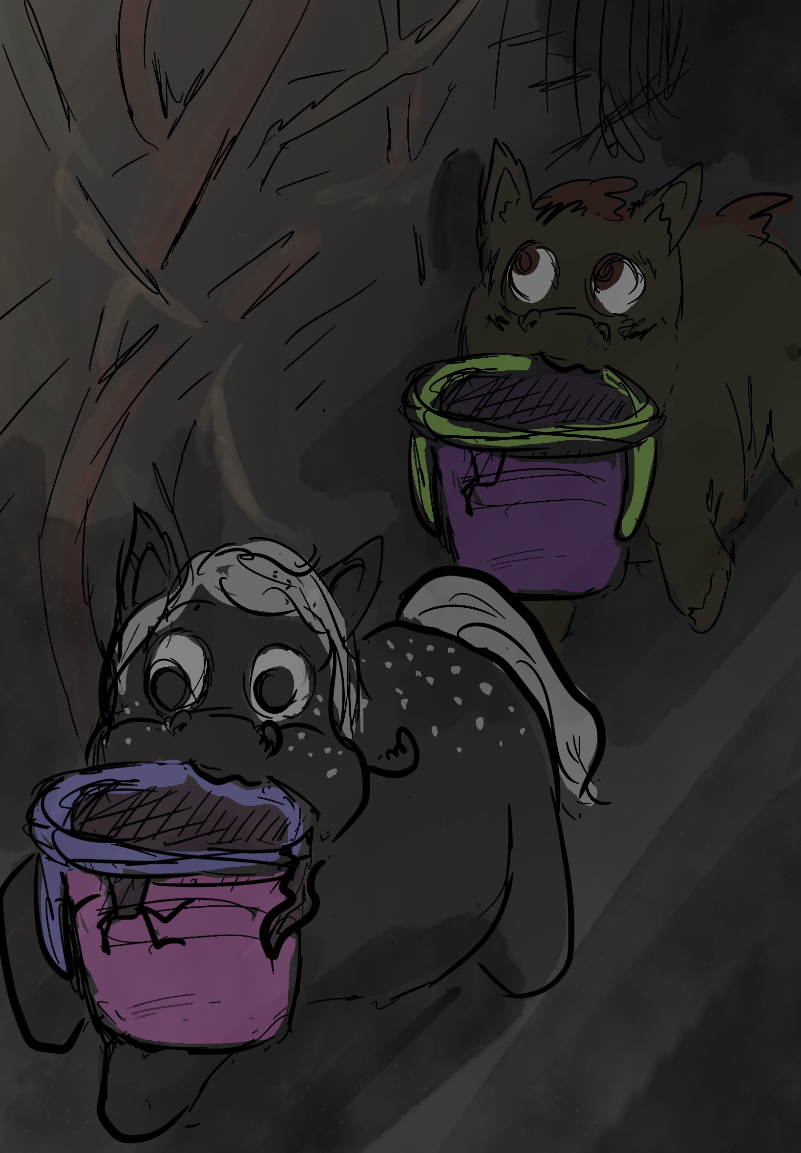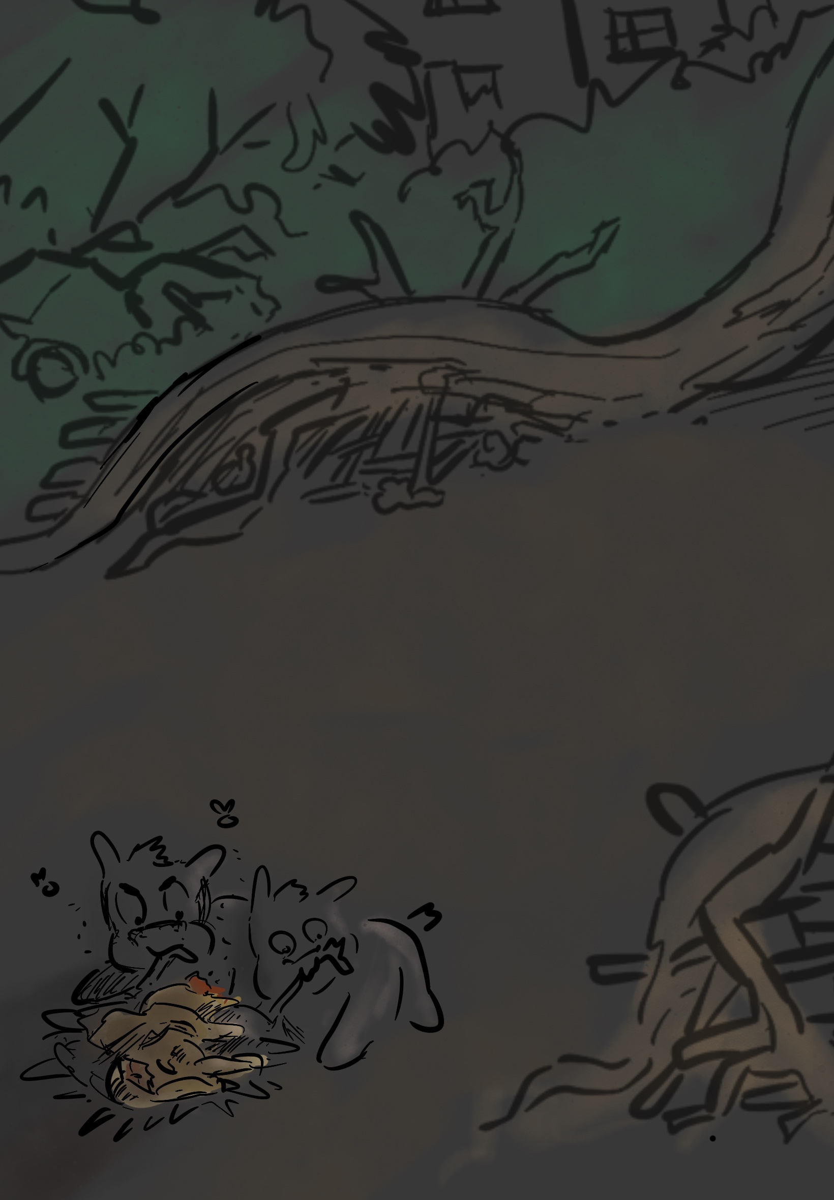 High summer meant even the cool, dark interior of the burrows were warm, and Sparkle had several broken sippy cups full of a fine white powder. Ash, from the last forest fire. Sparkle’s ancestors learned to collect the ash from where the biggest trees burned. Sandy assumed it was some kind of medicine.