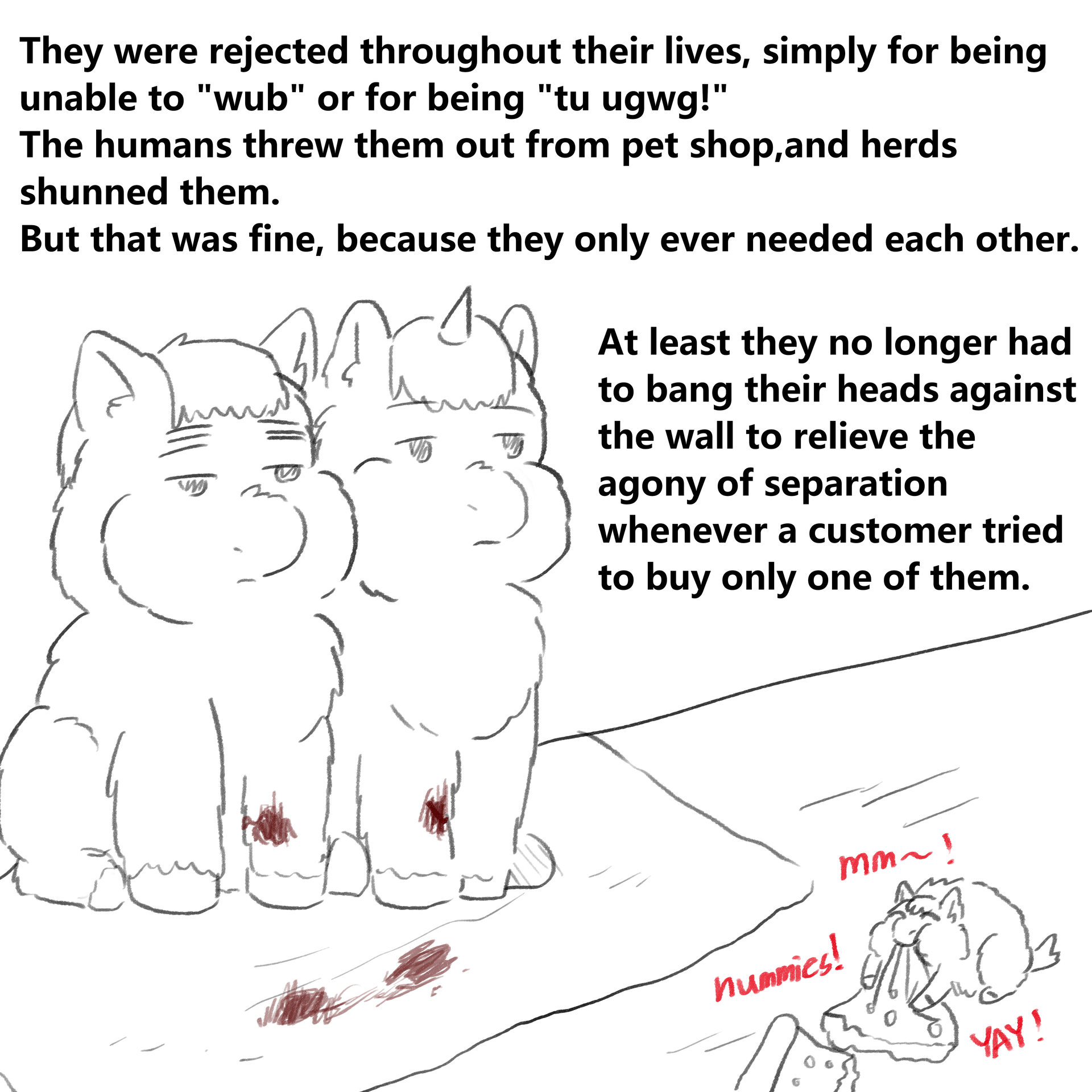 I felt bad for them. Even with their limited intelligence and poor ability to express themselves, they were good fluffys and tried their best. At least they can rest together now.