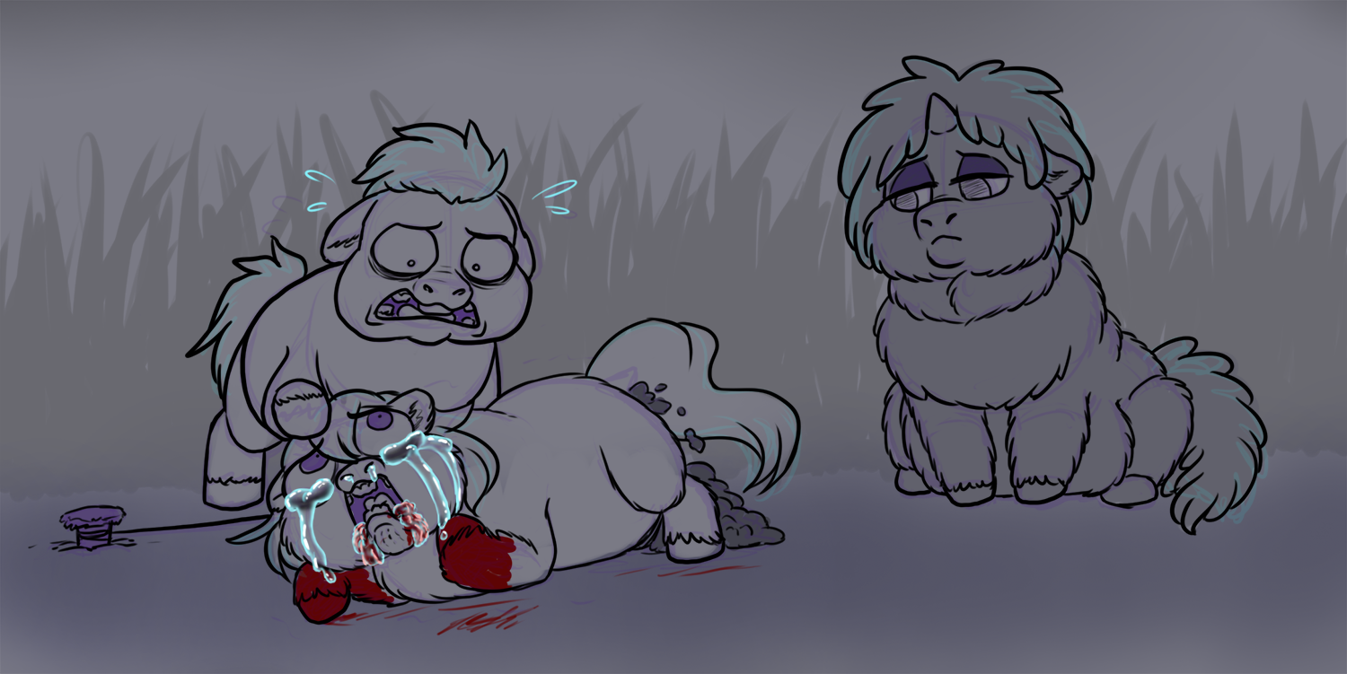 âNu⌠NuuhuuhuuâŚâ In your grief, you snapped. The sudden swell of anger filling you as you rounded on the mare and slammed a hoof into her muzzle. âDIS AM AWW YO FAUWT!!â