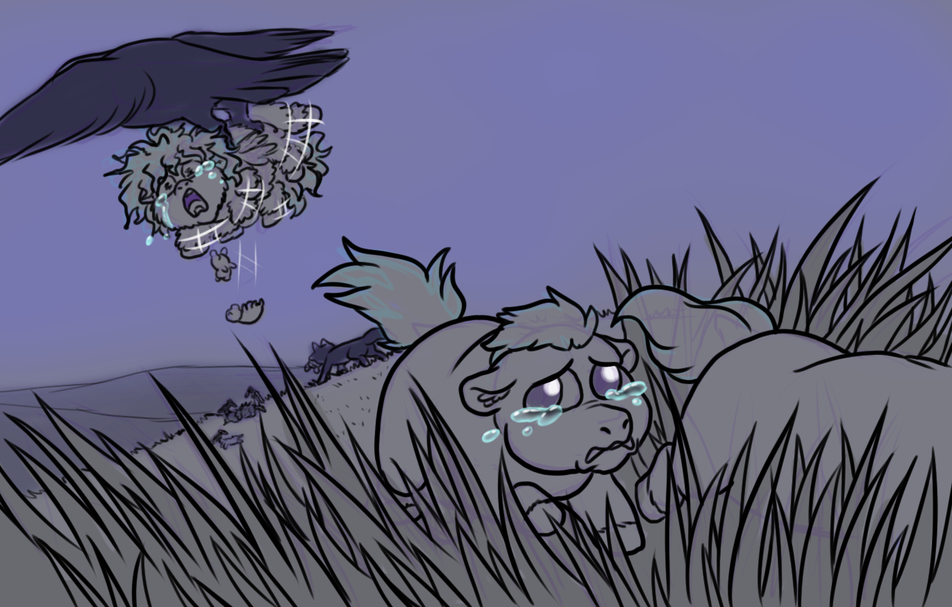 Even your special friend was taken from you. You didnât even hear the wings of the big wingie-munstah. Just her pained and terrified screams as she was snatched up into the are by itâs sharp talons. Your poor little chirpie babbehs falling to their deaths. You couldnât afford to stop and save them. By the time thier tiny bodies hit the ground with small, horrible thuds, you were too far away to tell if they still made any chirps. You were a bad toughie, and a worse daddehâŚ