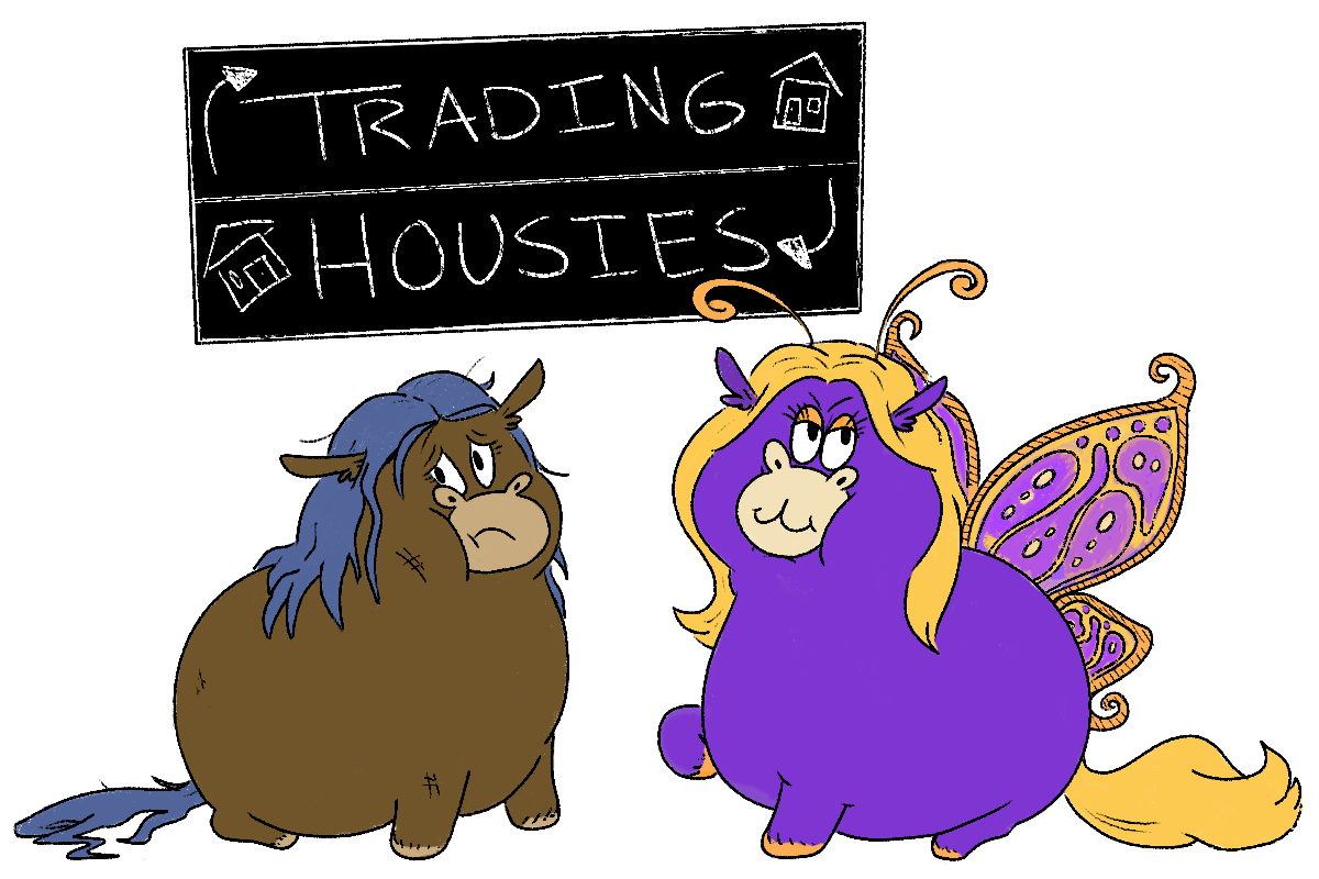 “Now give a howdy-doo to a more salt of the Earth gal: Loretta.” The narrator announced in a hokey as Hell ‘southern’ voice. Was it Appalachian? Texan? It was shitkicker. Up on screen now was a particularly dirty brown mare standing on top of a giant mound of dirt. Leaves, twigs, and faded candy wrappers poked out of her dull blue mane and tail.